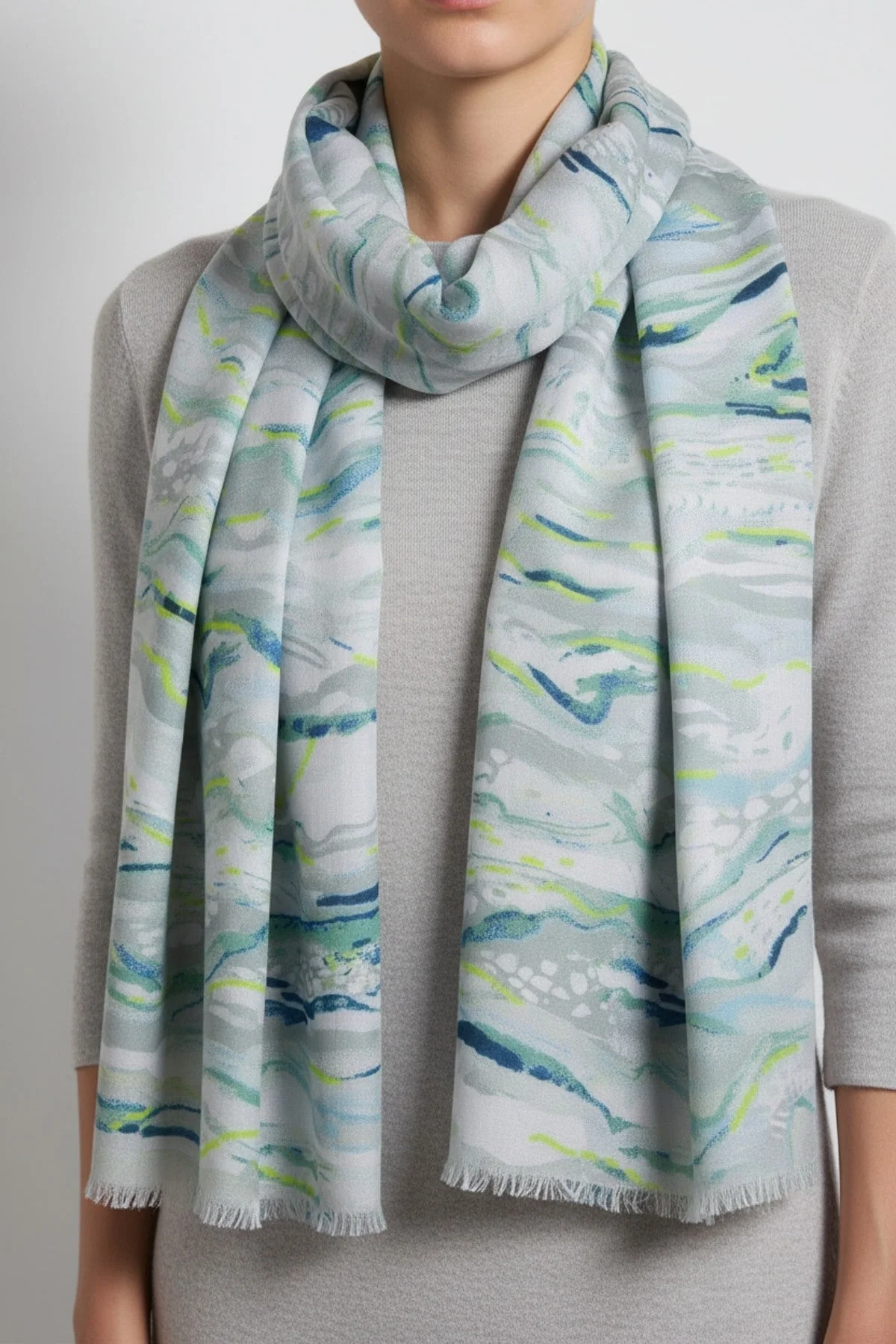 Mint Green Wave Print Scarf