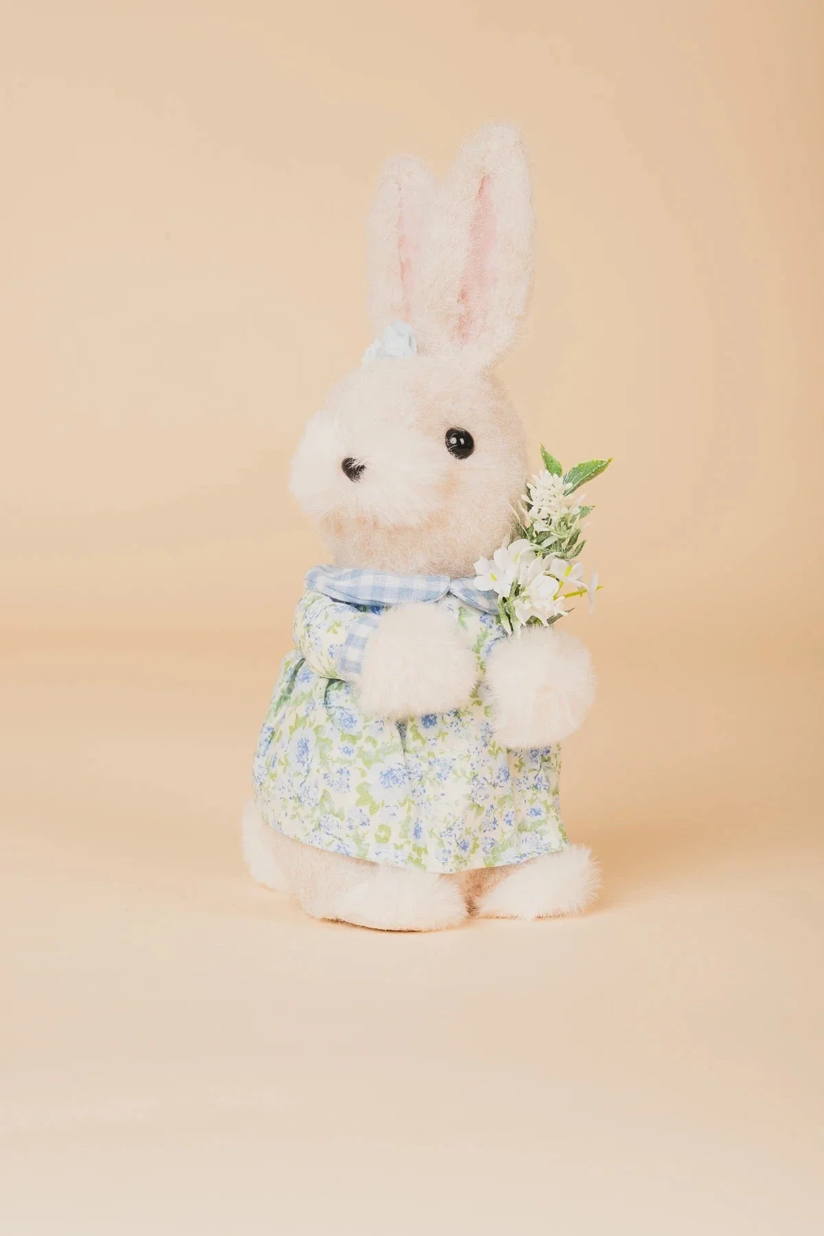 Blue Easter Bunny Girl Holding Flowers