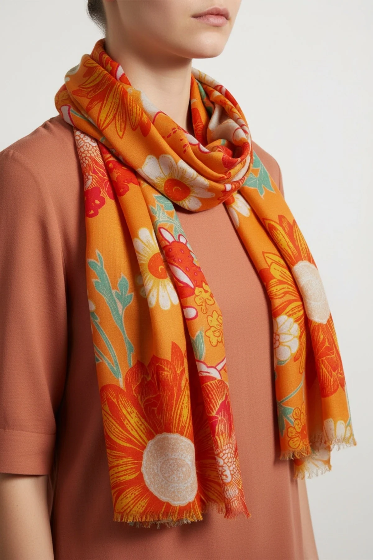 Orange Large Floral Print Scarf