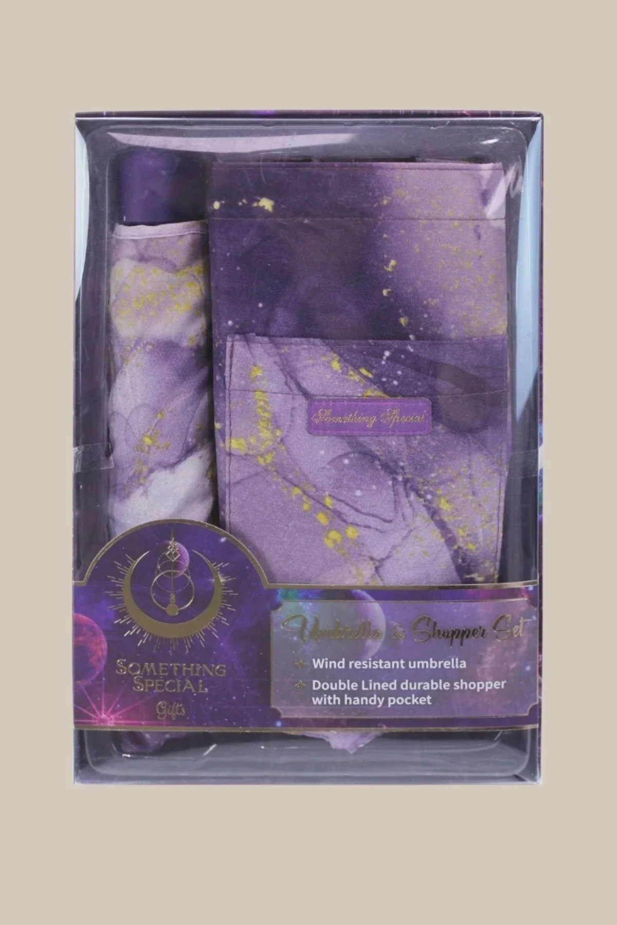 Purple Marble Print Umbrella & Shopper Set