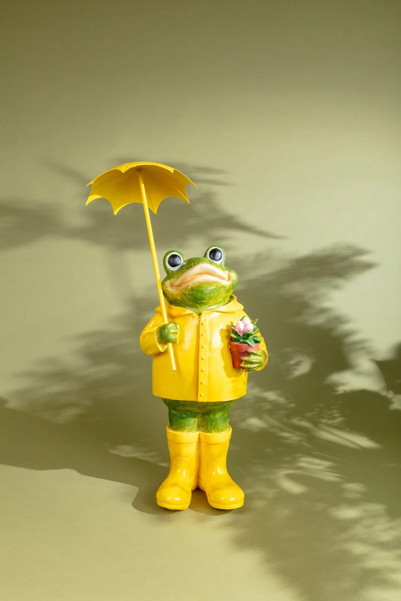 X-Large Frog with Yellow Umbrella & Wellies