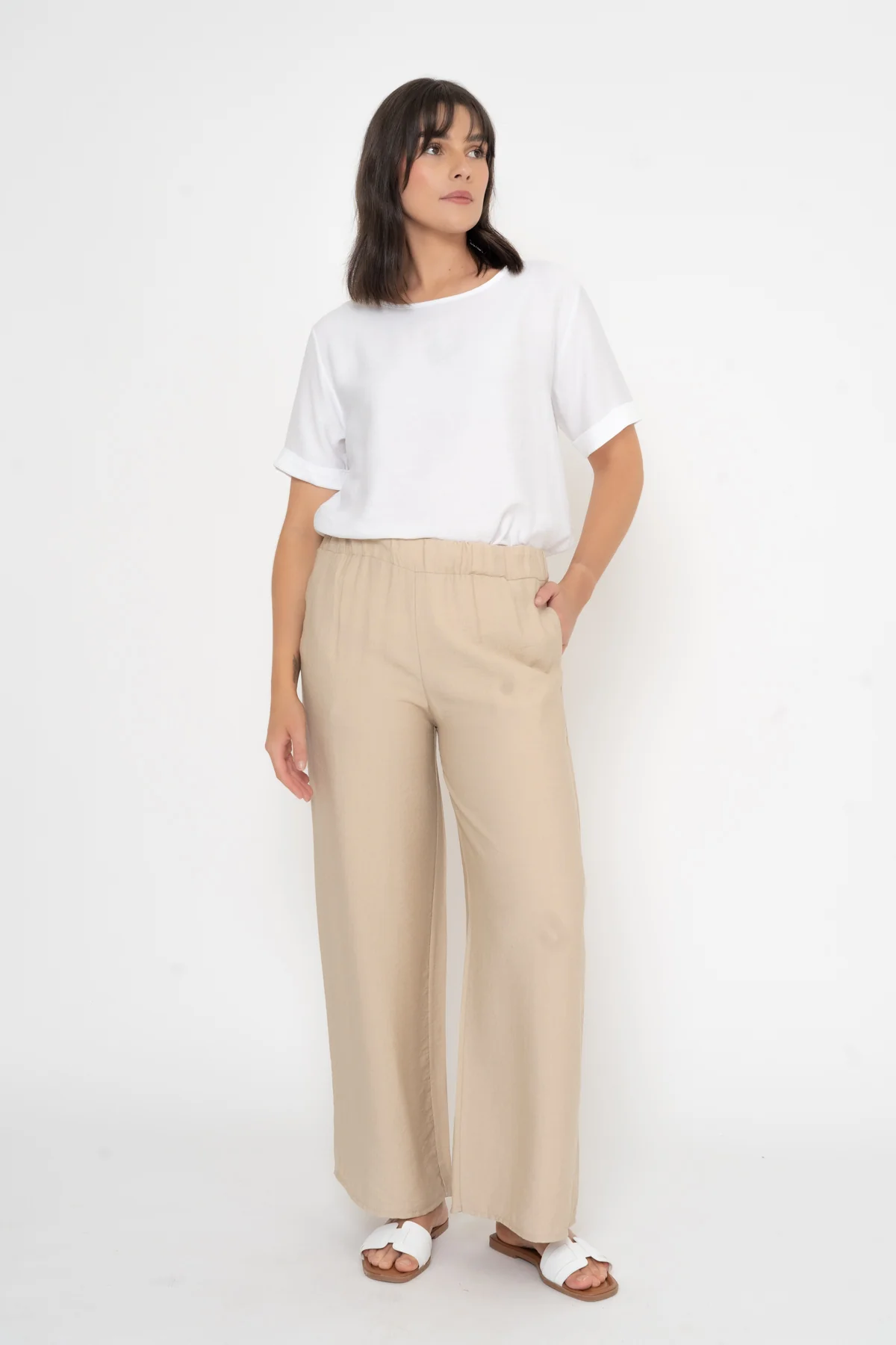 Casual Full Length Pant in Beige Tones
