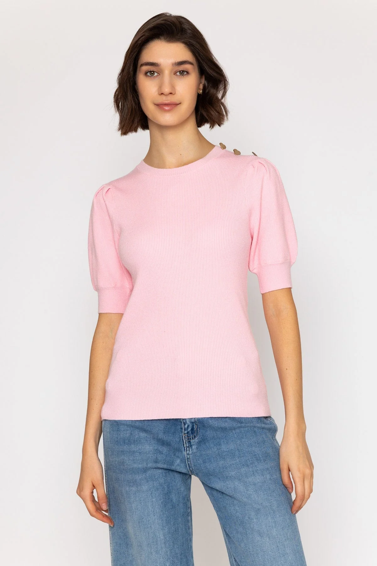 Pink Short Sleeve Knit Top with Heart Buttons