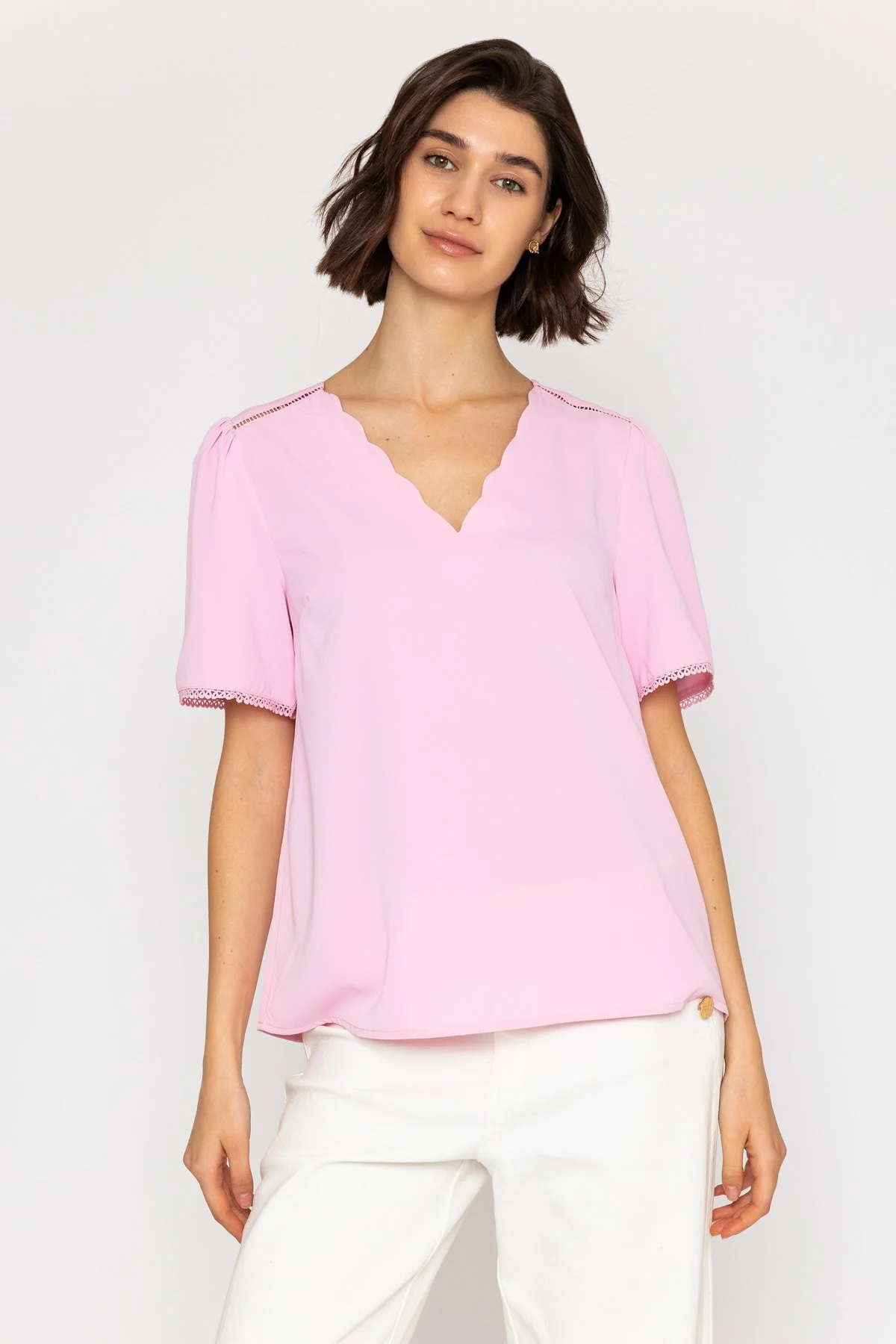 Pink Short Sleeved Top with Scallop Neck