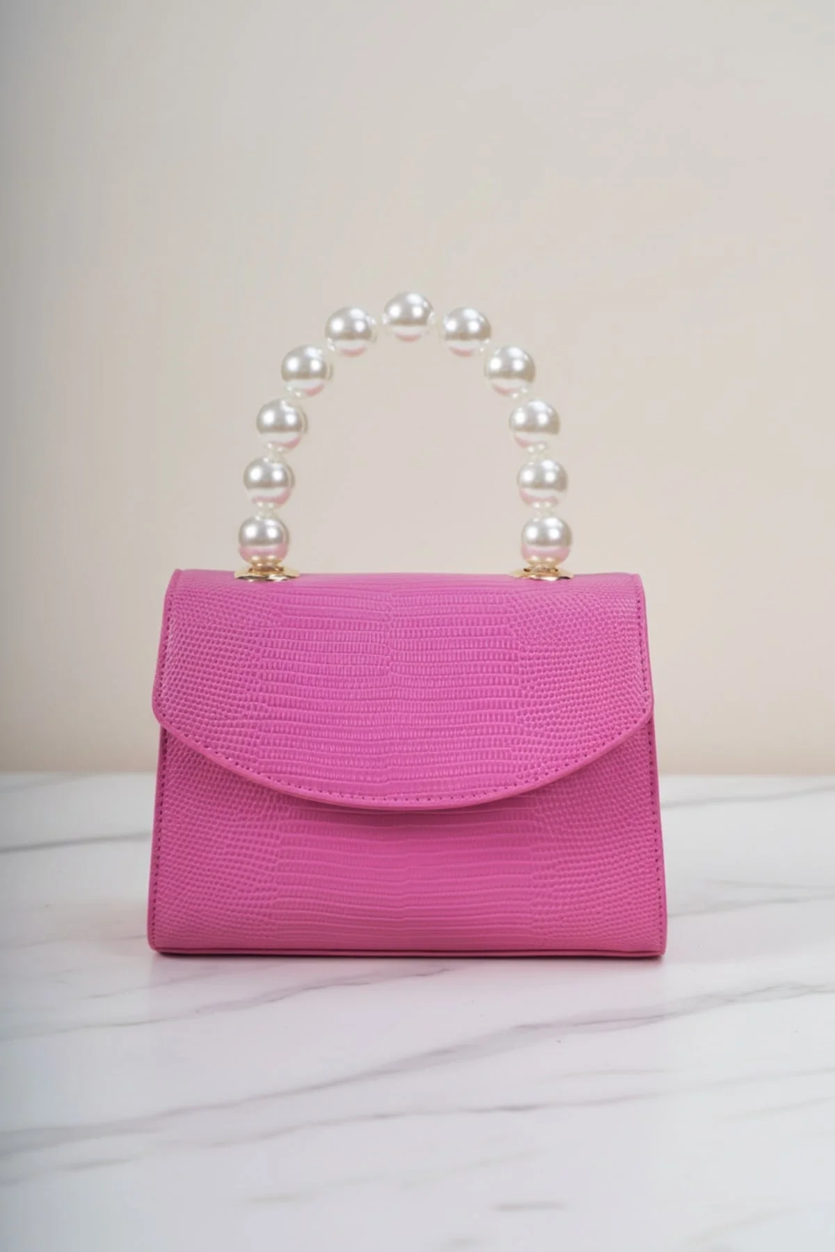 Pearl Top Handle Clutch Bag in Fuchsia Pink