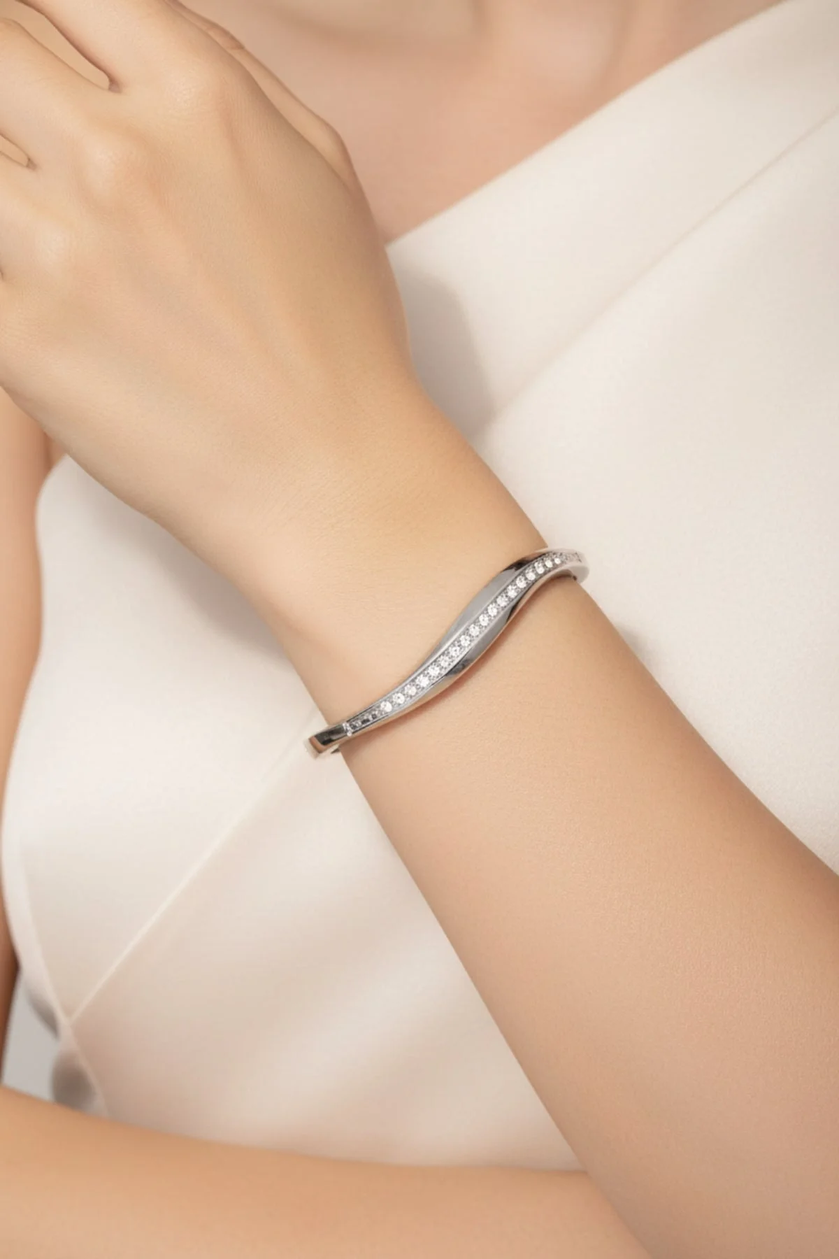 Silver Diamante Wave Bangle