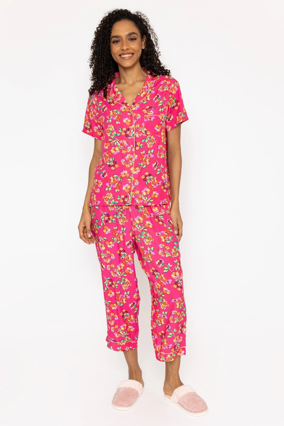 Pink Floral Printed 3/4 Leg Pyjama Set