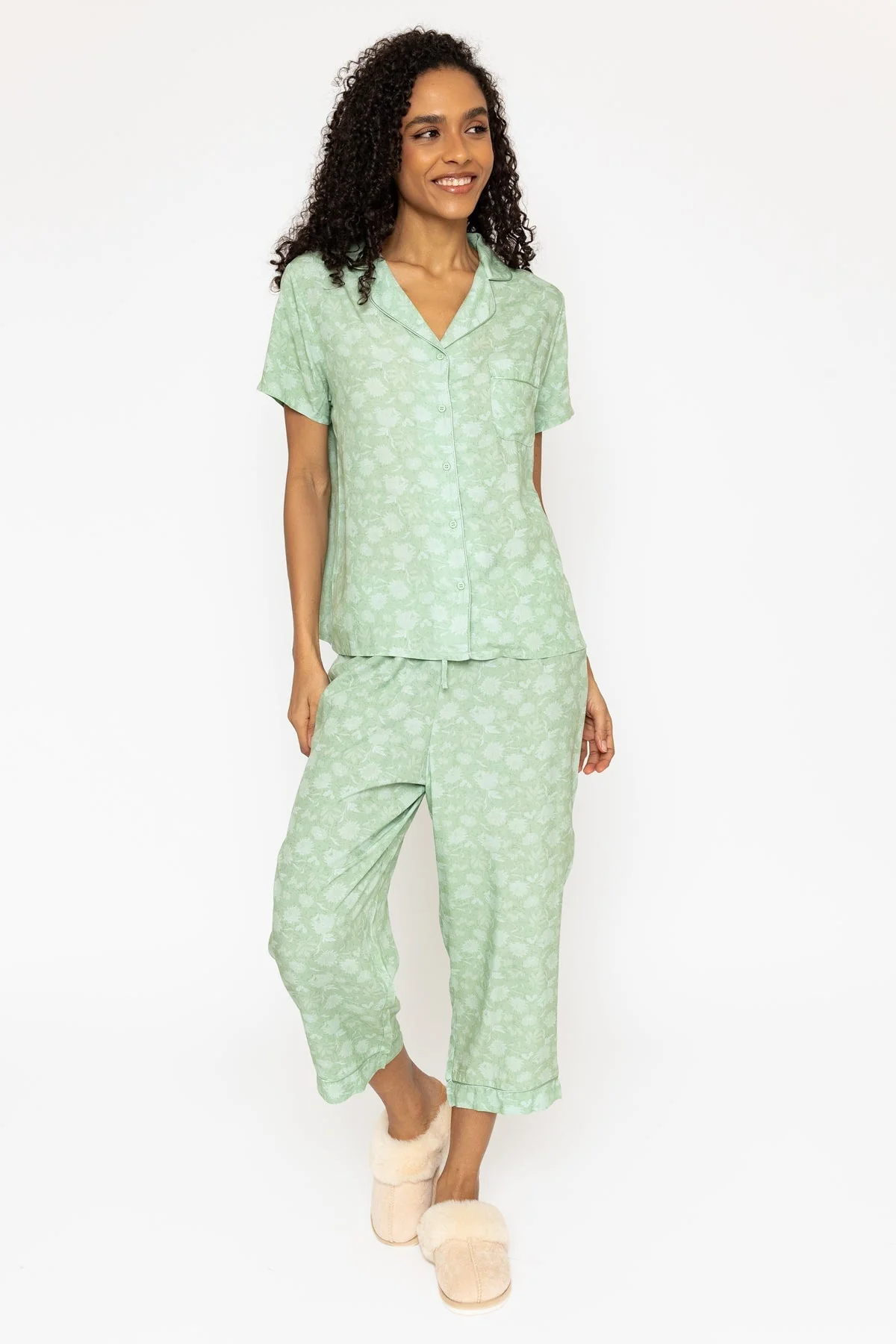 Sage Floral Printed 3/4 Leg Pyjama Set