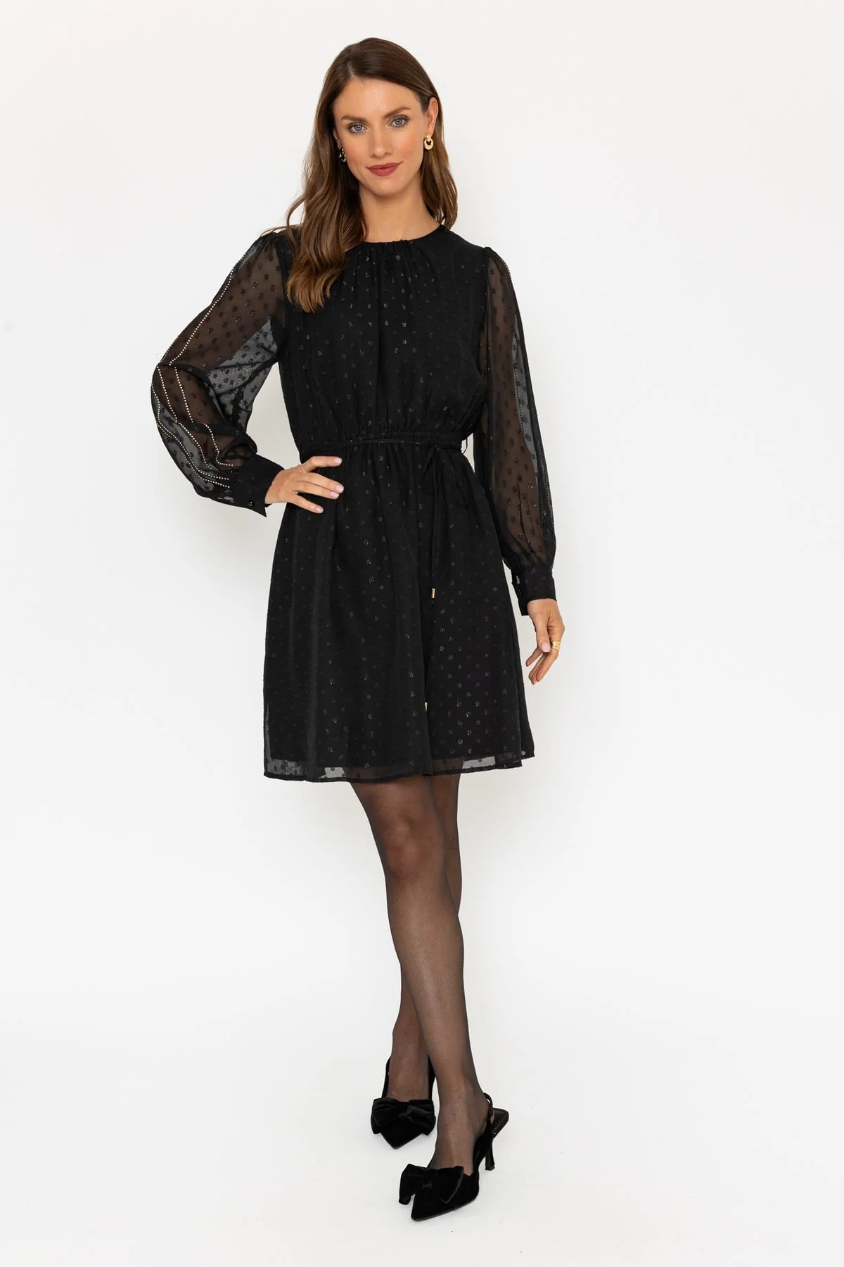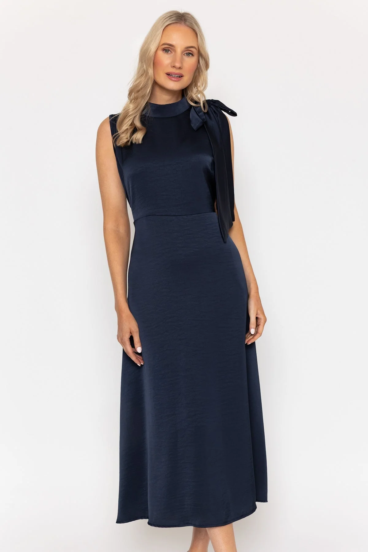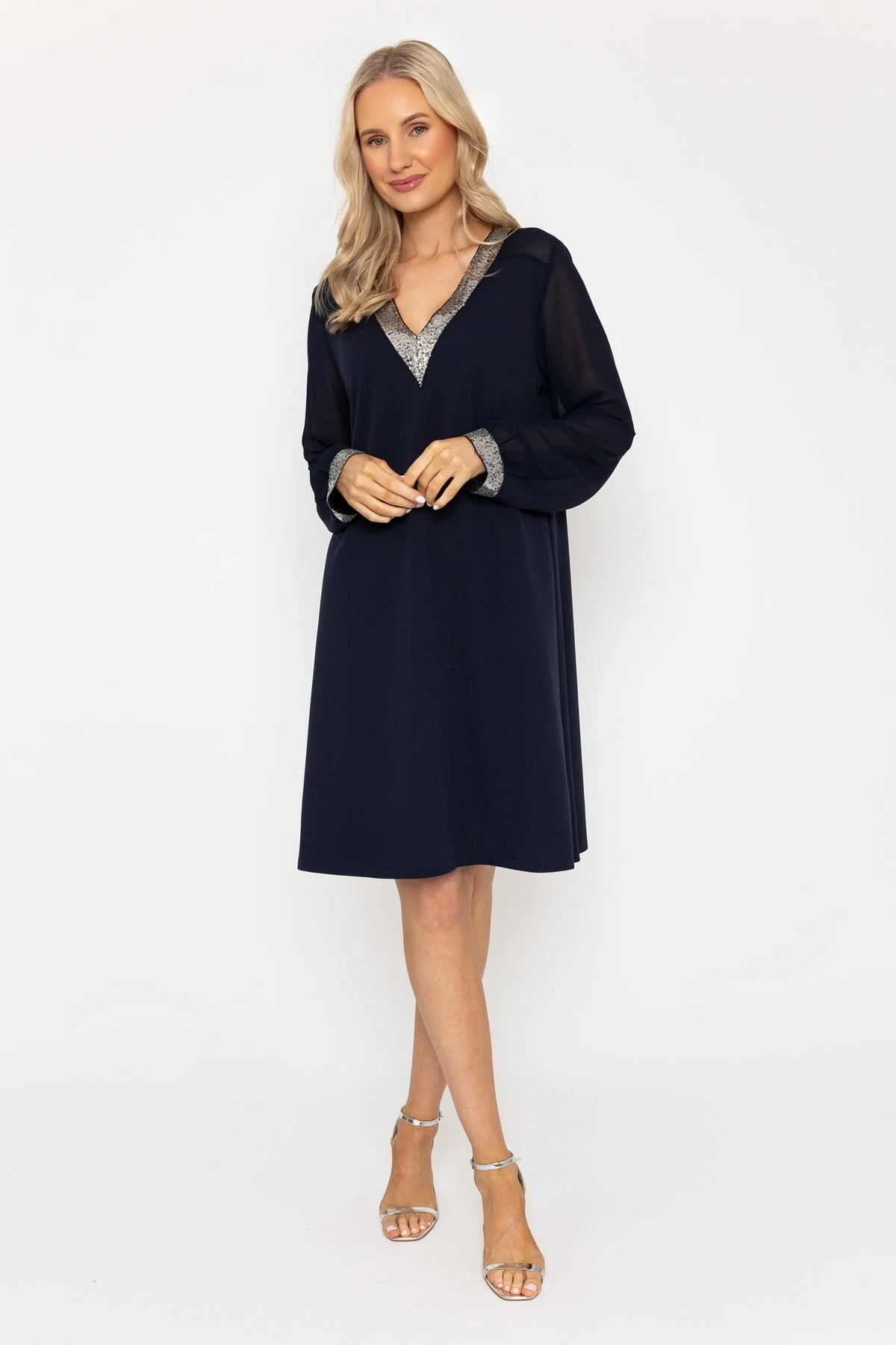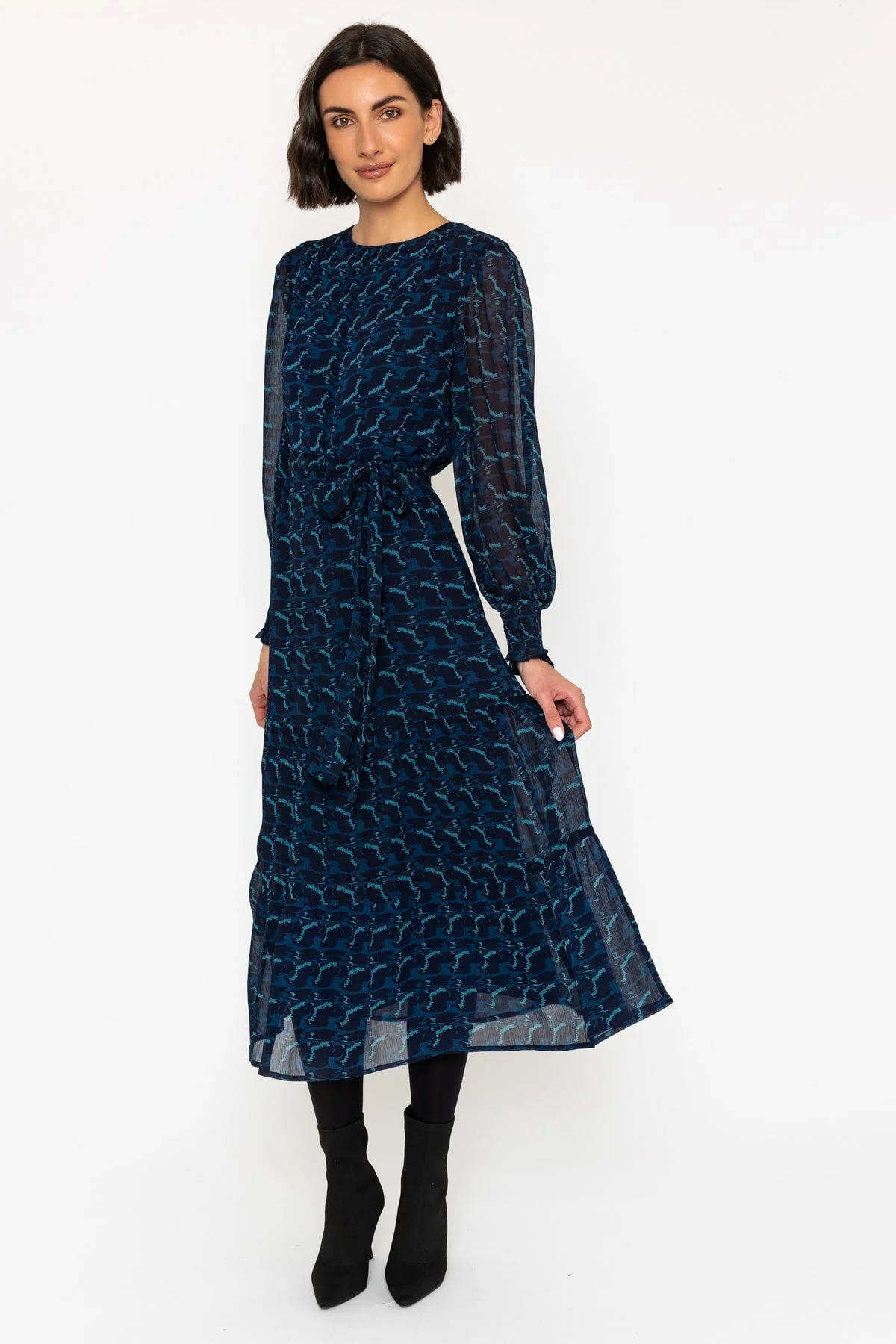 Navy Long Sleeve Ribbed Knit Midi Dress