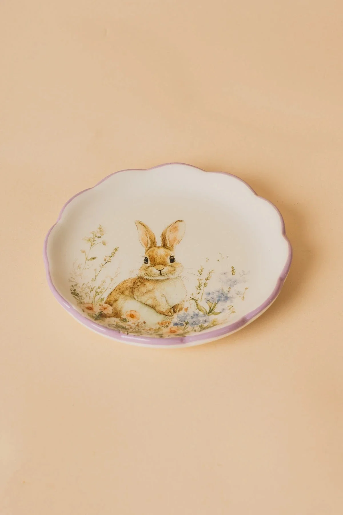 Bunny Tidbit Plate with Purple Rim