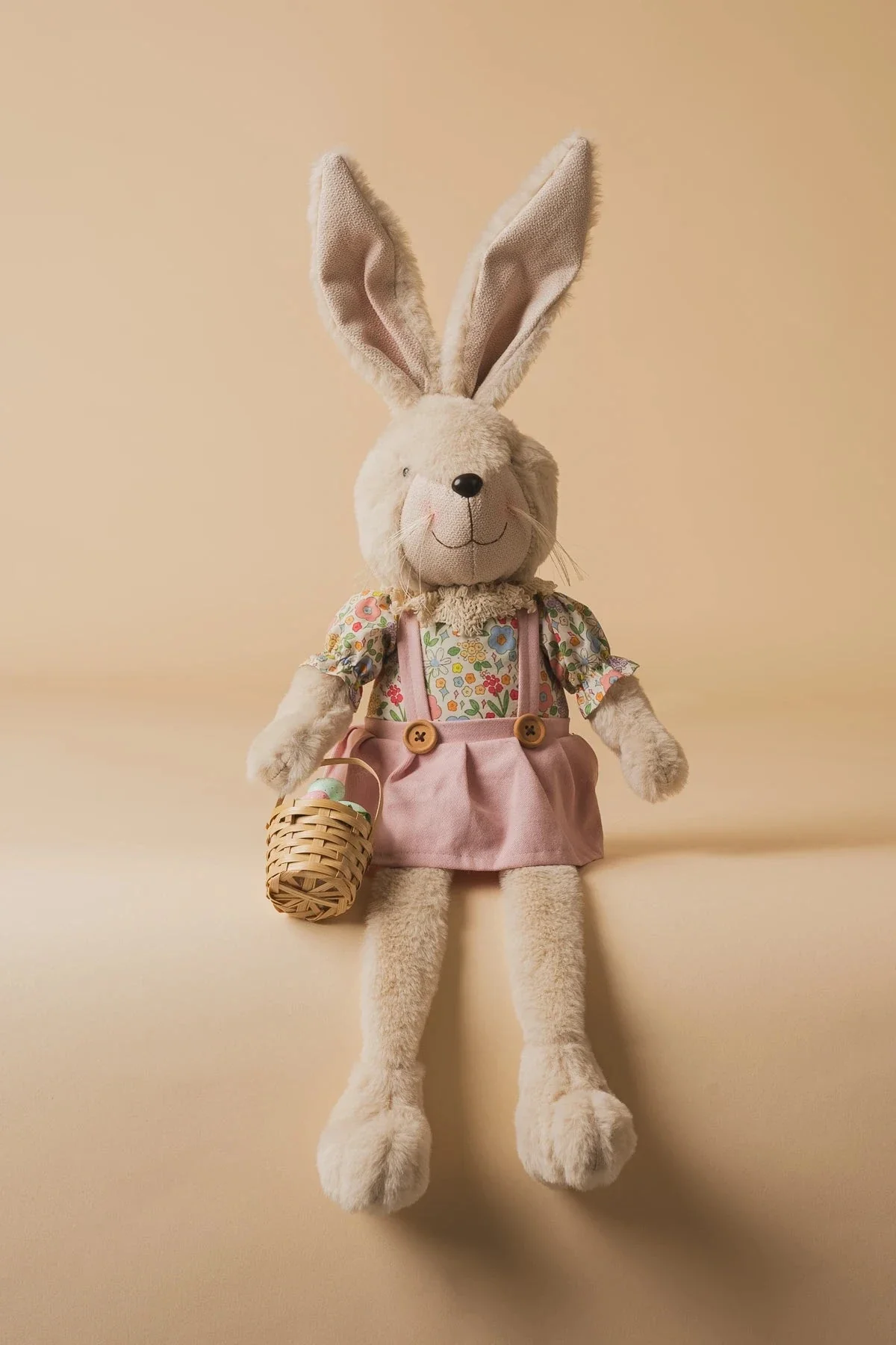 Sitting Ms. Bunny Holding Easter Eggs Basket