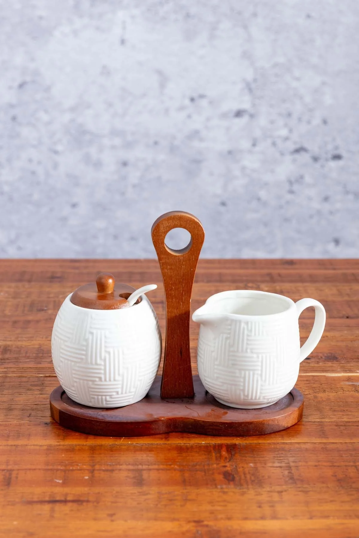 Cable Knit Condiments Caddy With Acacia Wood
