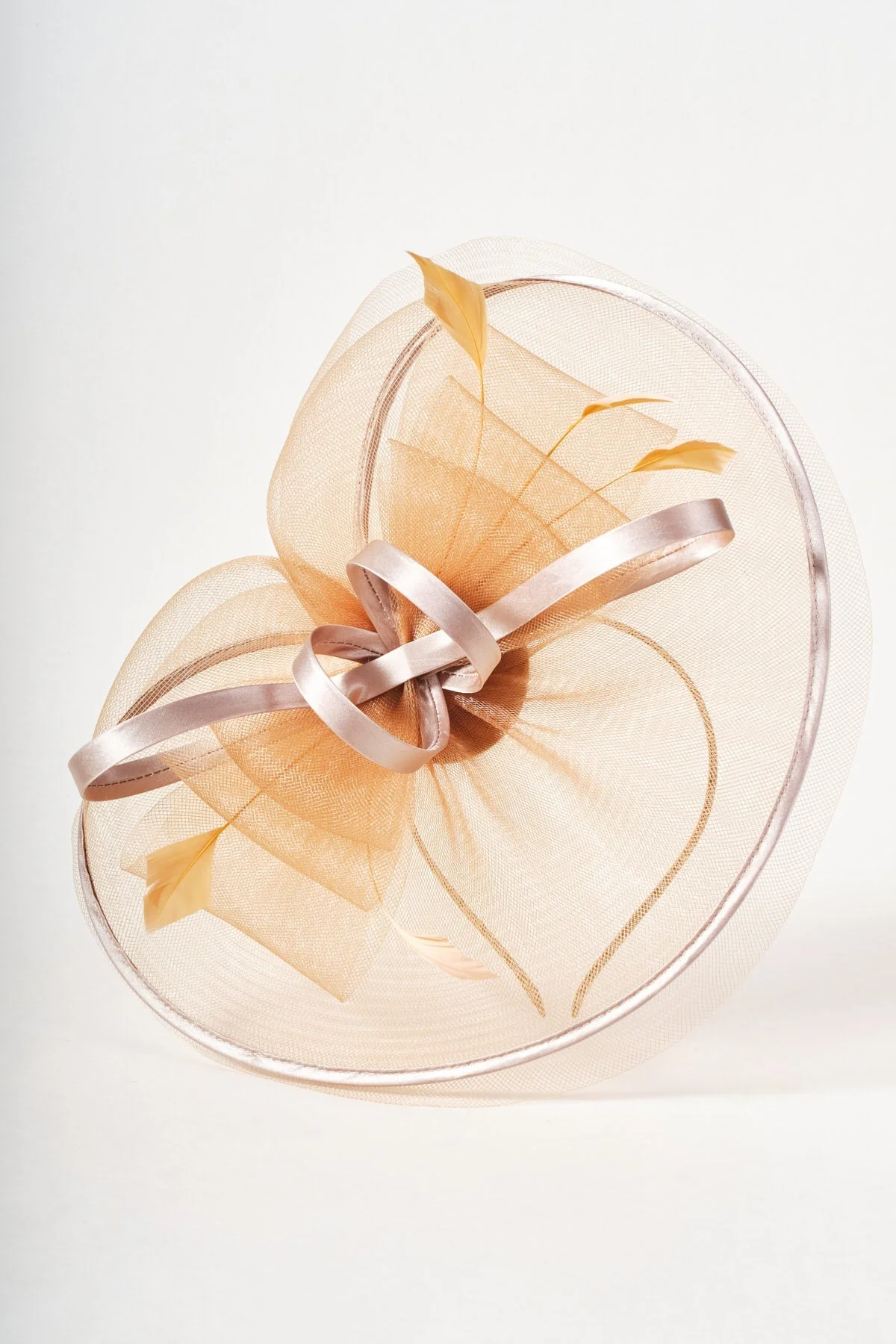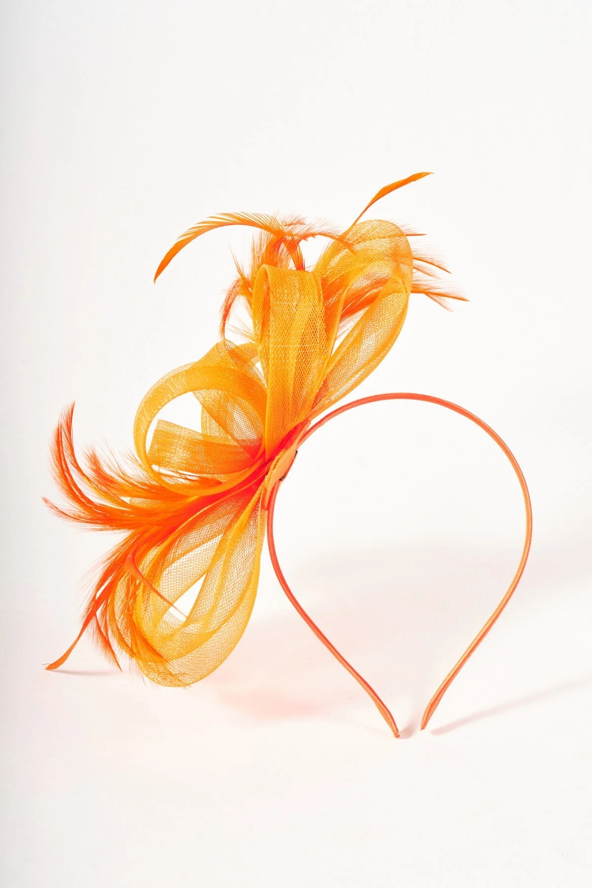 Orange Net Bow & Feather Fascinator