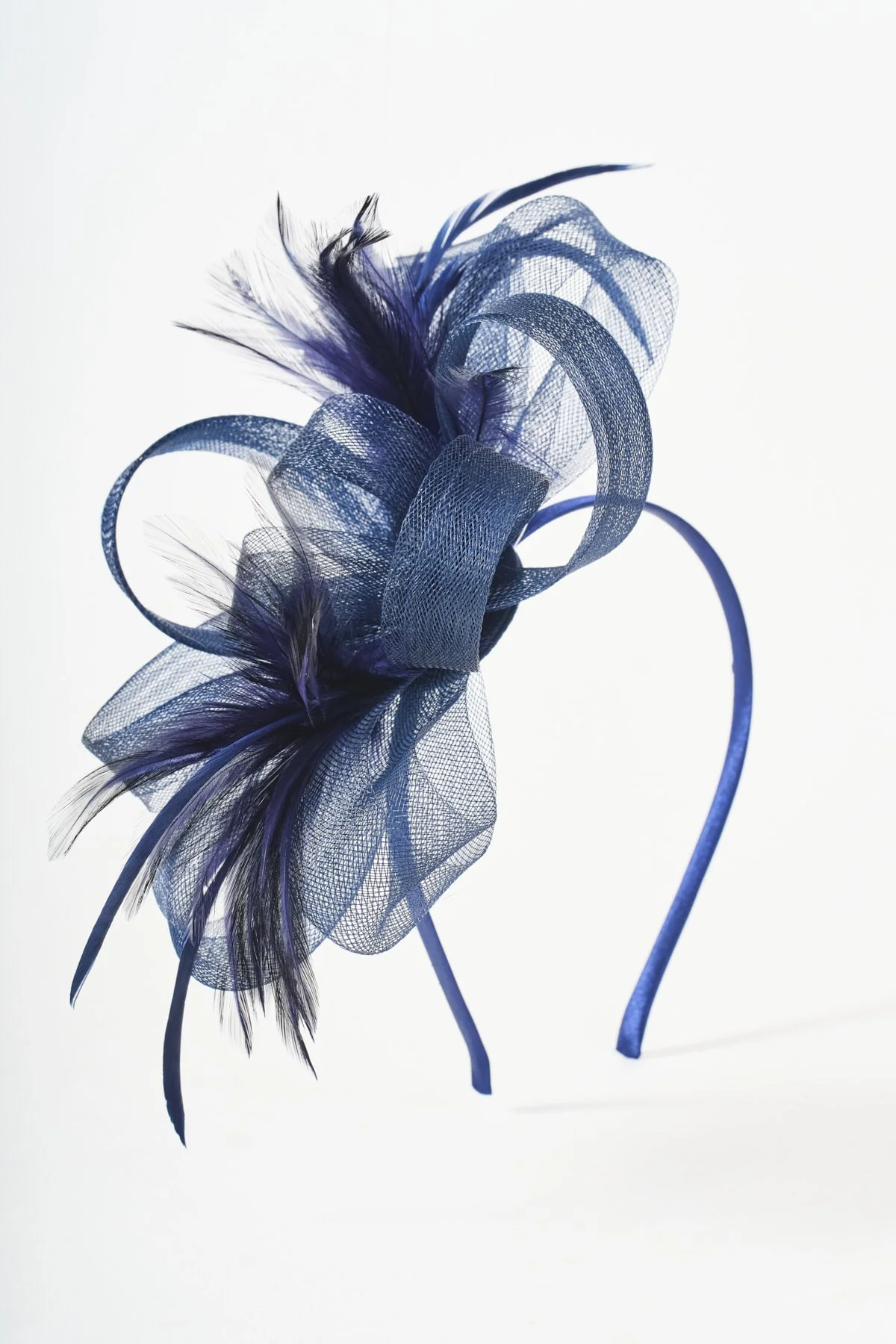 Navy Hairband Fascinator with Bow & Feathers
