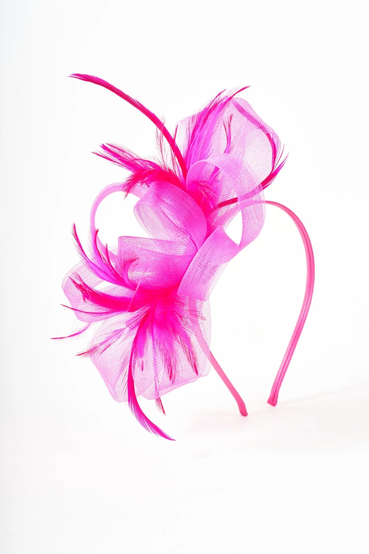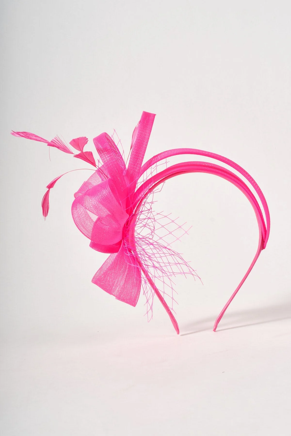 Pink Fuchsia Net Bow & Feather Fascinator