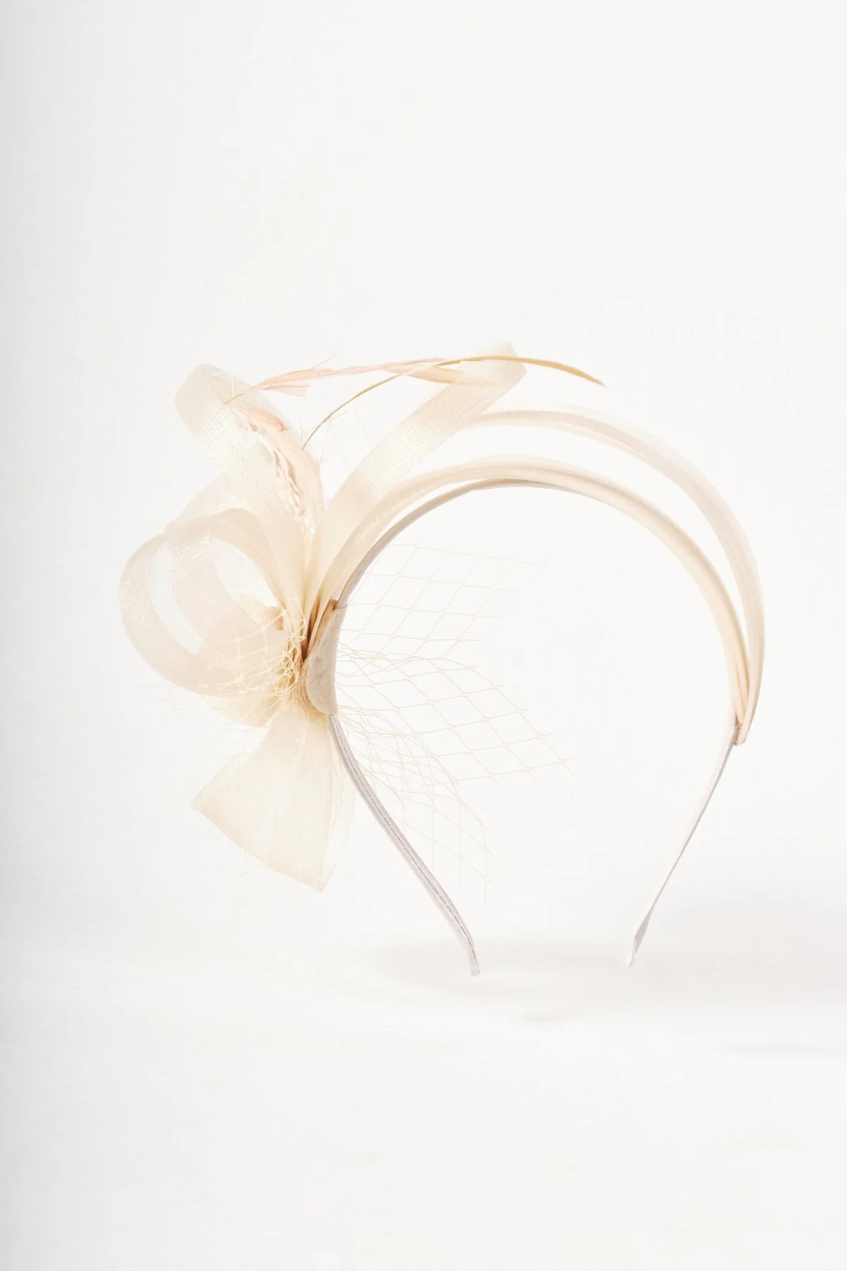 Cream Hairband Fascinator with Bow & Feathers