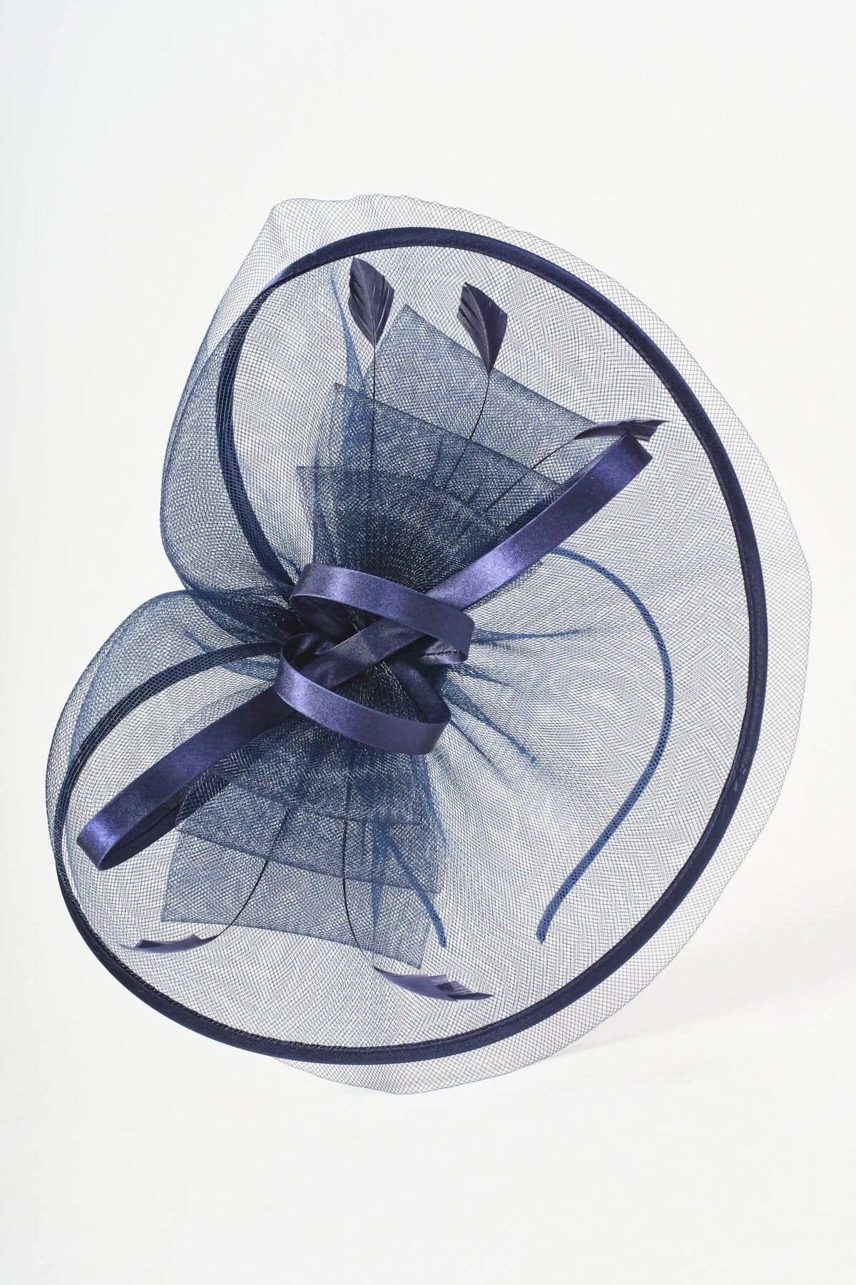 Navy Net Bow & Feather Fascinator