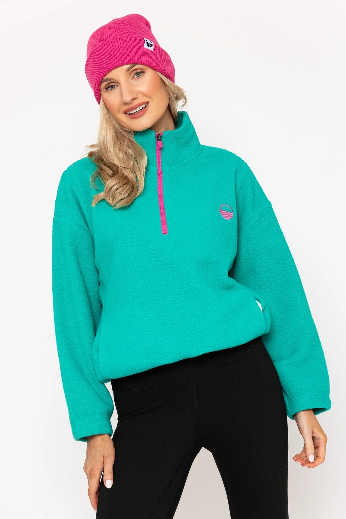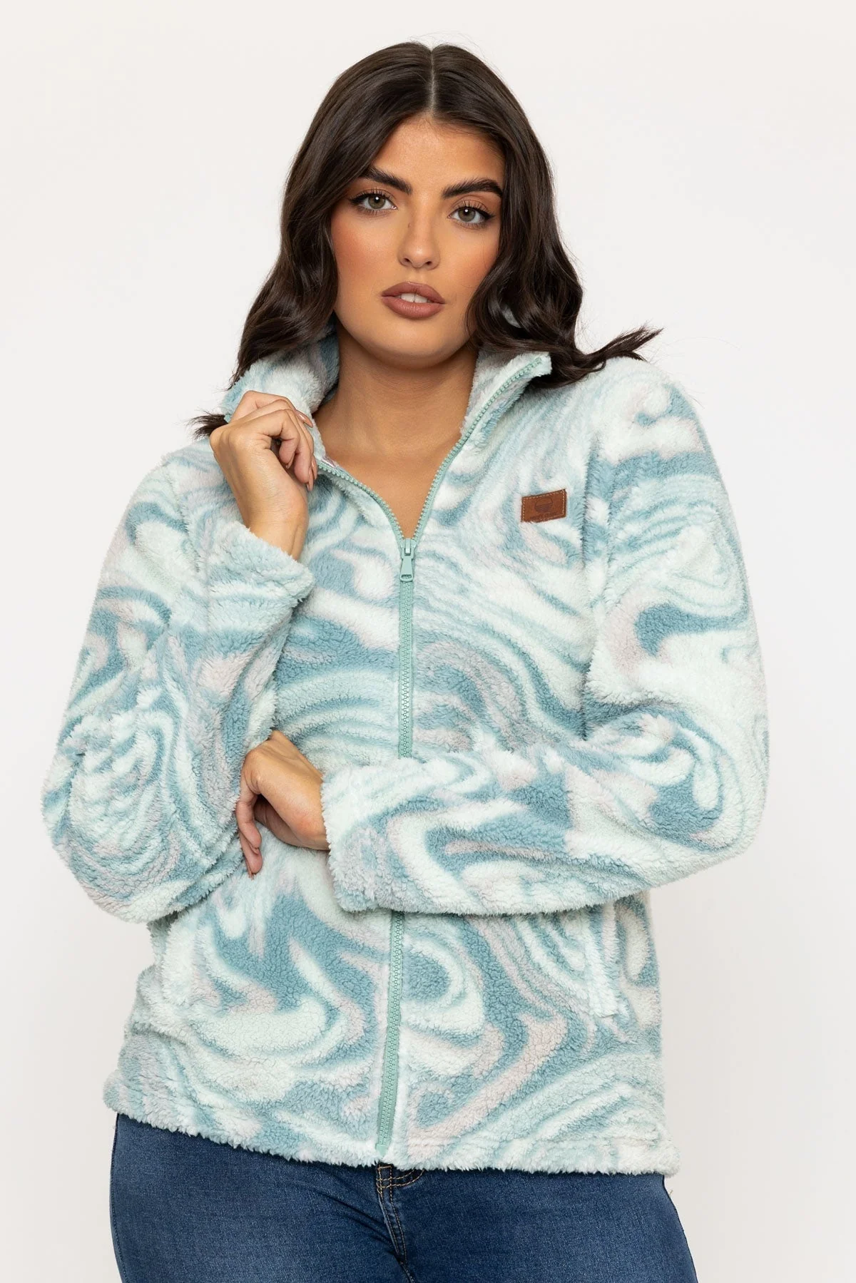 Turquoise Green Teddy Fleece With Contrast Zip
