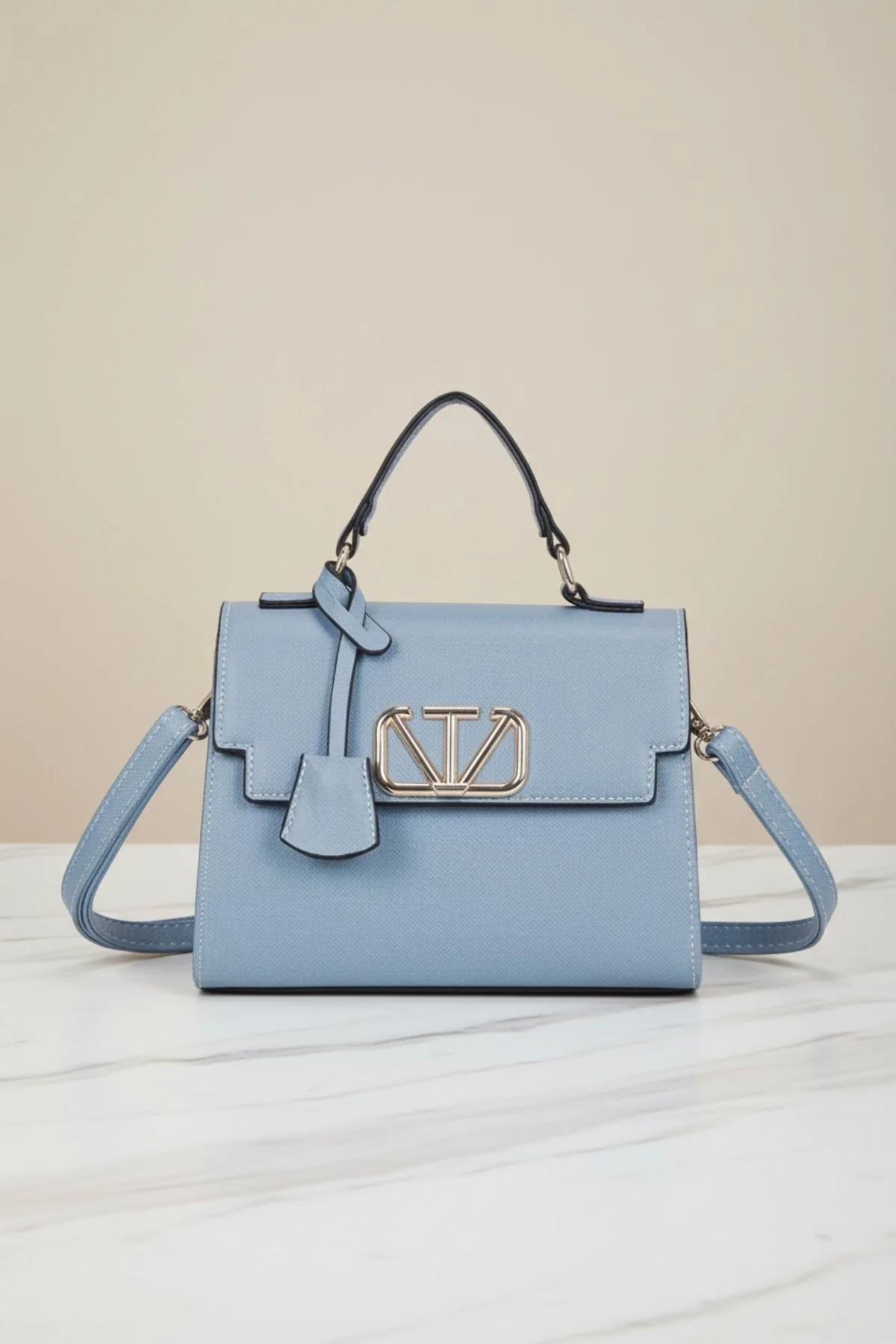 Blue Grab Handle Flap Bag
