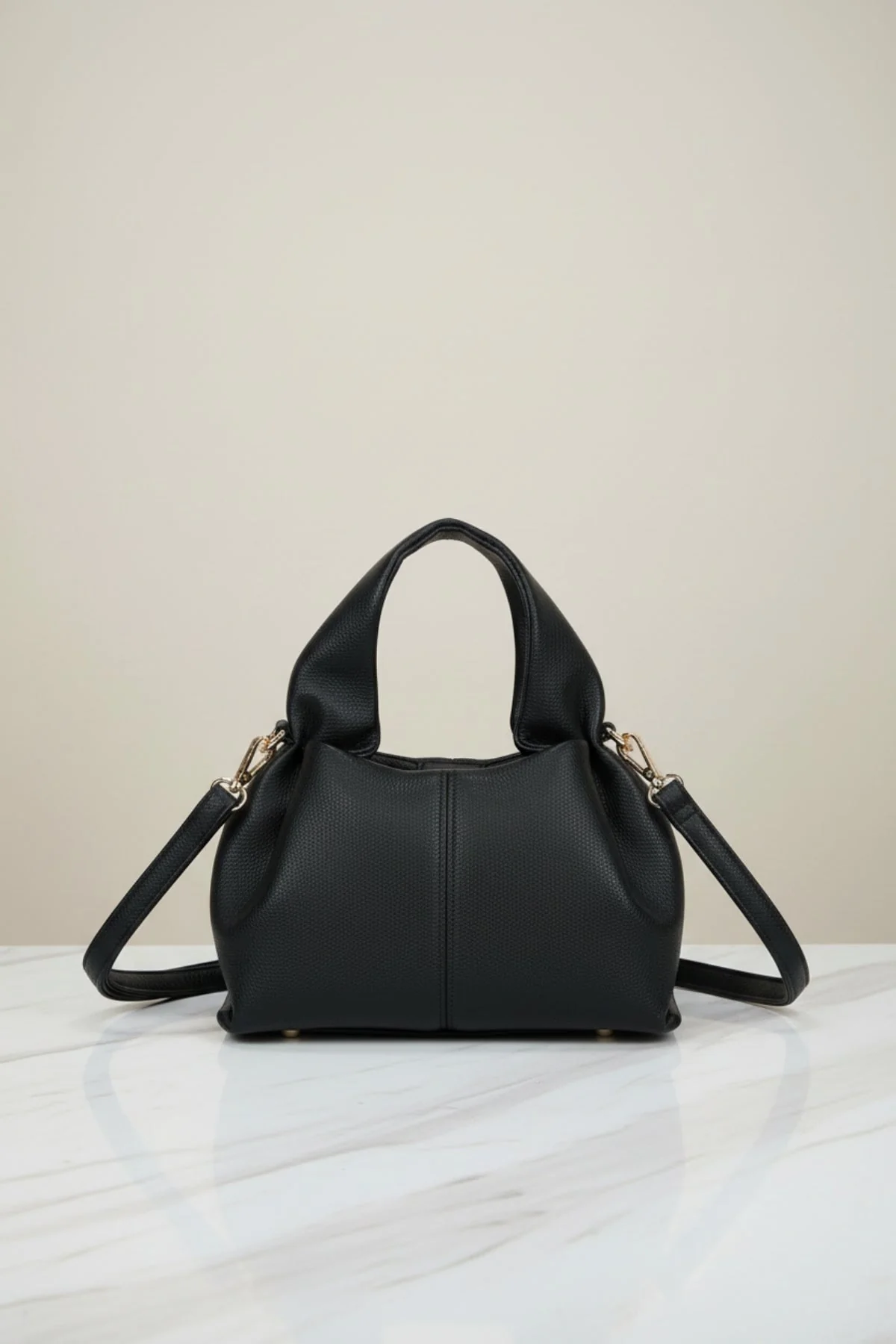 Black Soft Pleat Grab Handle Bag