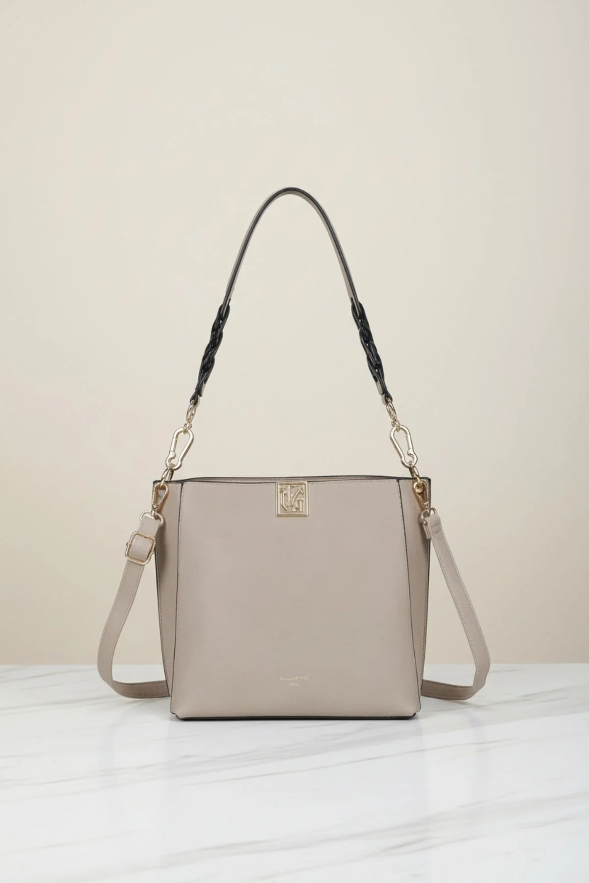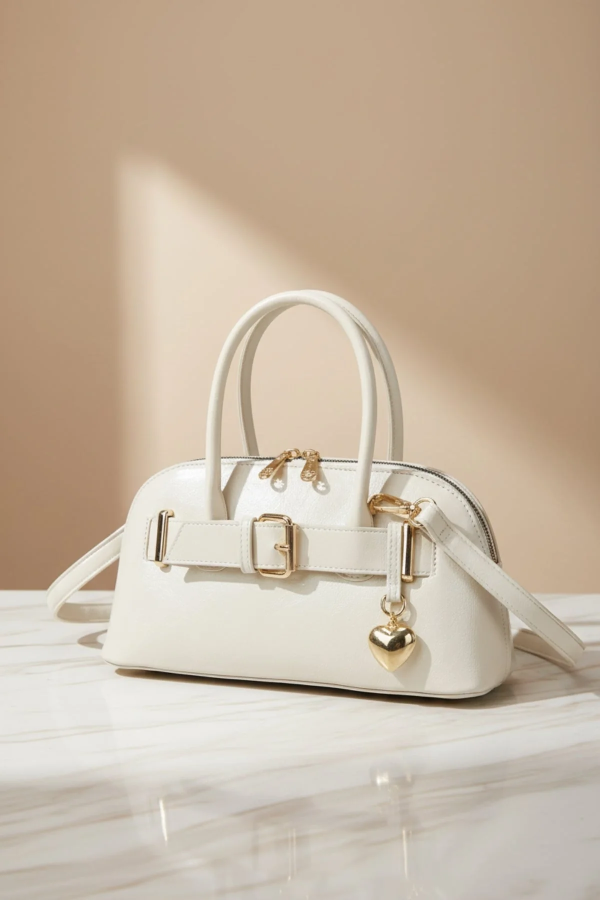 Beige Buckle Detail Bowling Bag