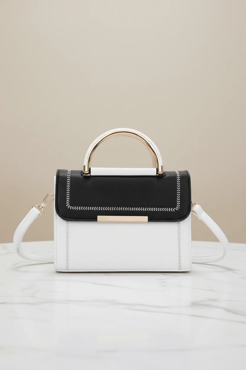 Black & White Colour Block Top Handle Flap Bag
