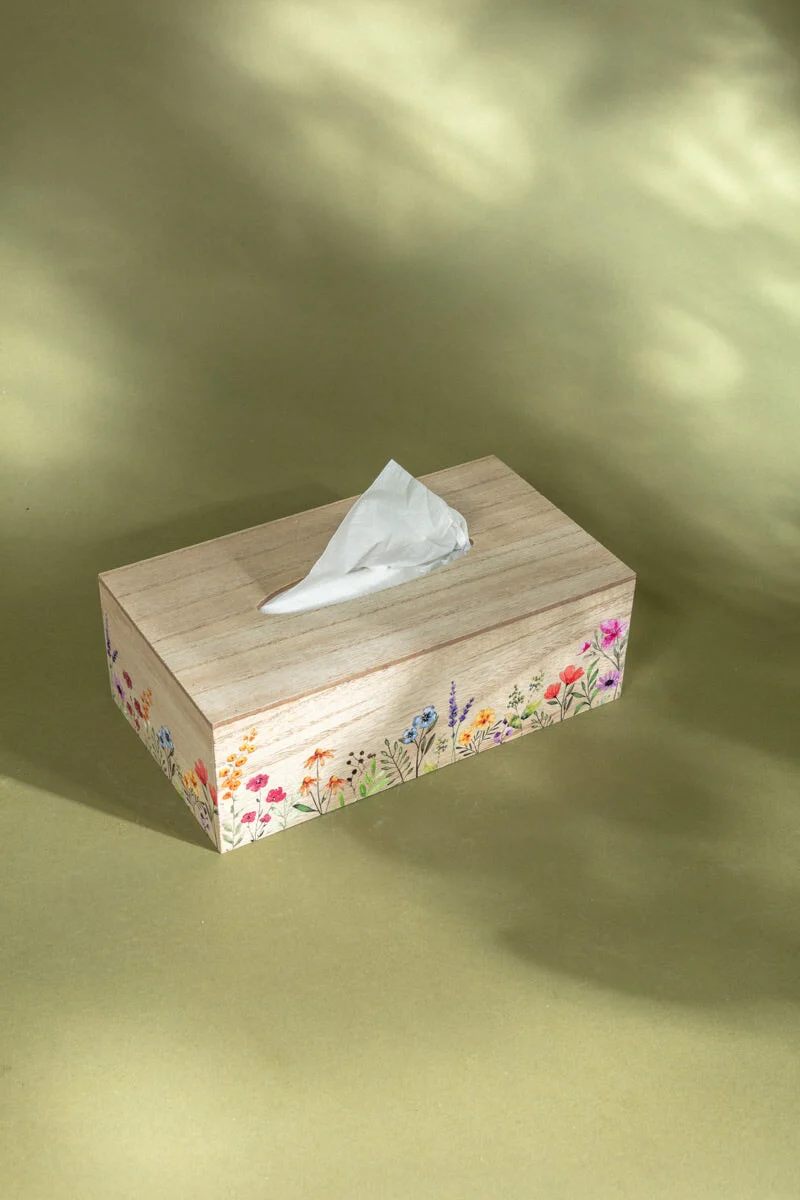 Wooden Floral Tissue Box