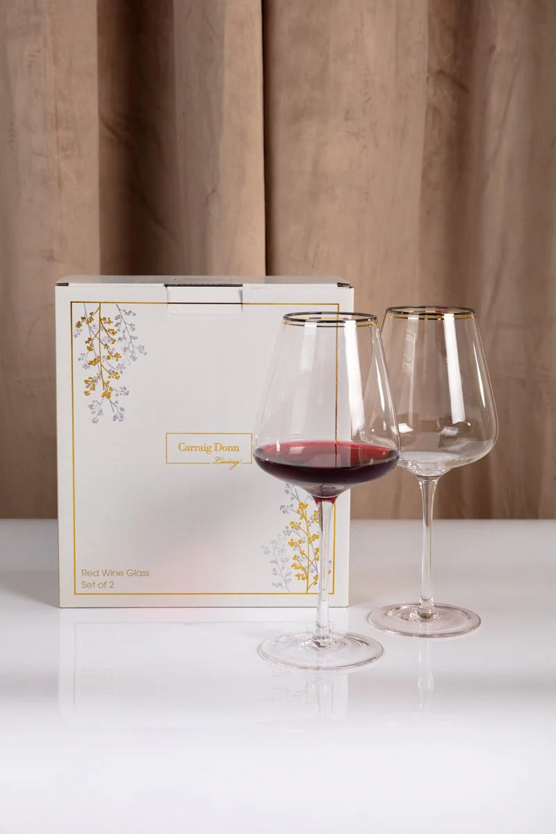 Set Of 2 Red Wine Glass with Silver & Gold Rim