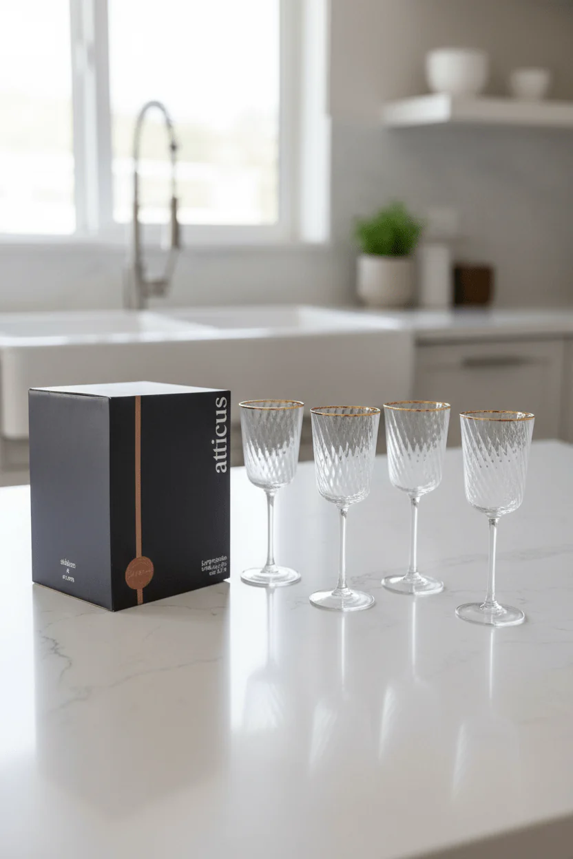 Set Of 4 Aster Gold Trimmed Wine Glasses