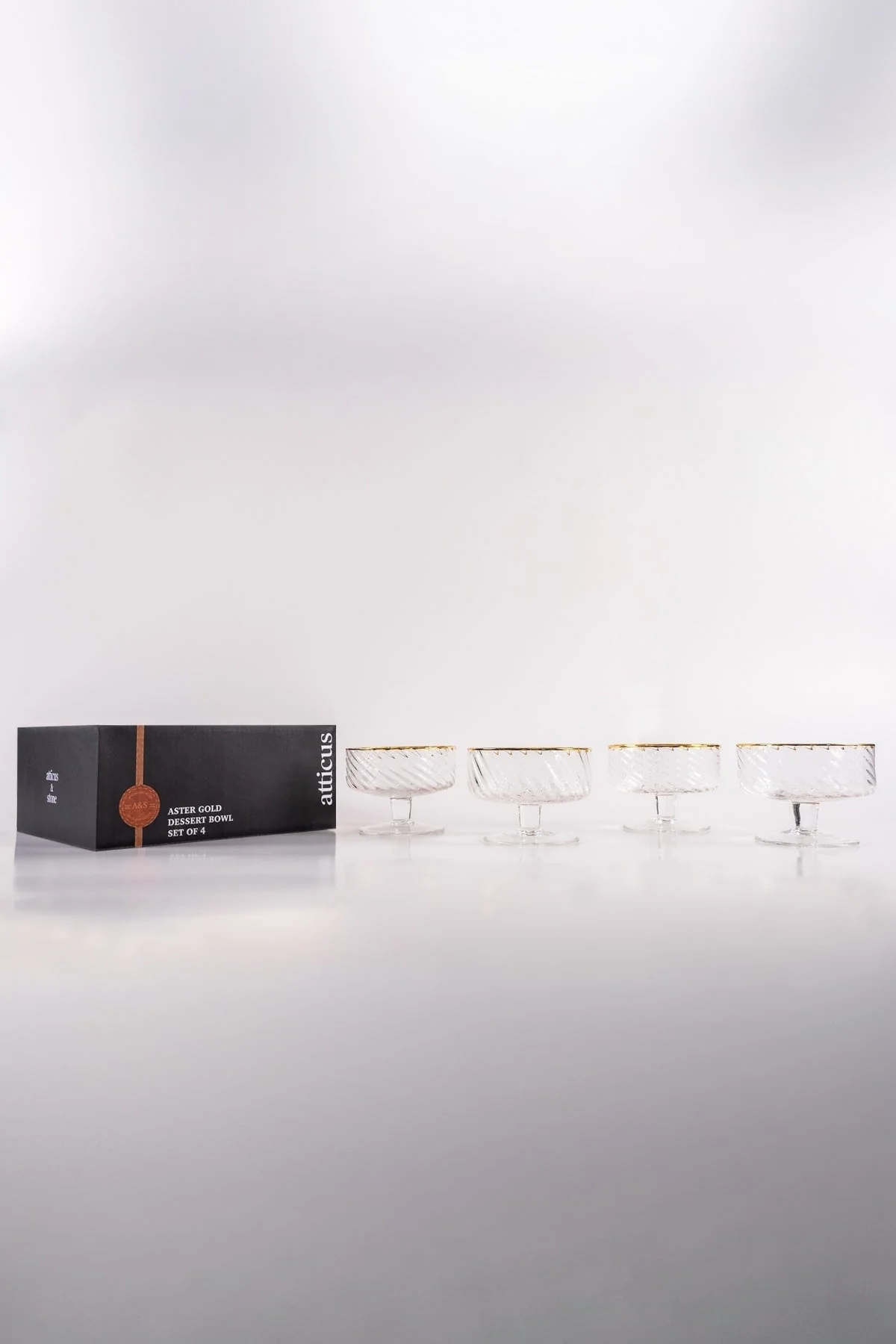 Set Of 4 Aster Gold Trimmed Dessert Bowl