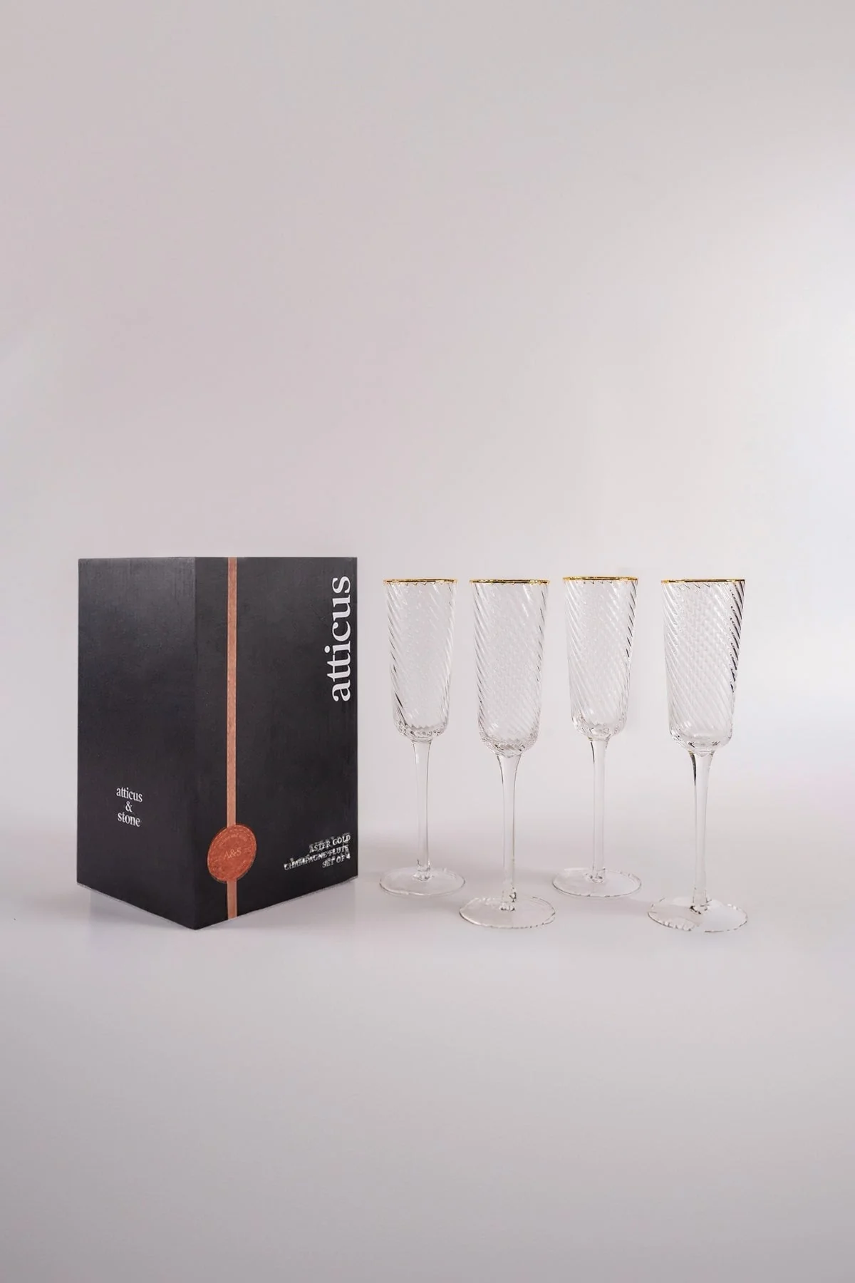Set of 4 Aster Gold Trimmed Champagne Flutes