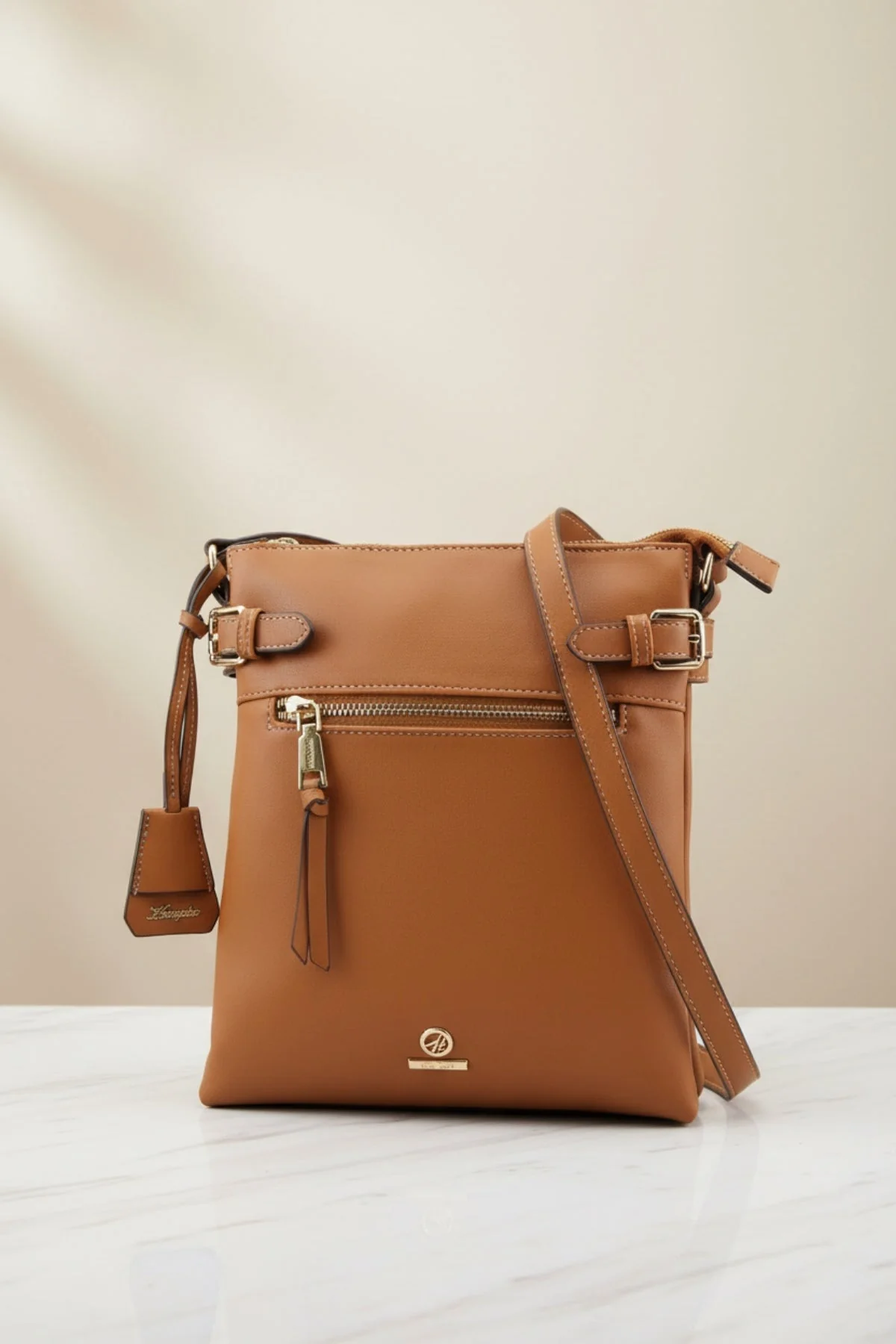 Jasmine Crossbody Bag With Front Zip in Tan