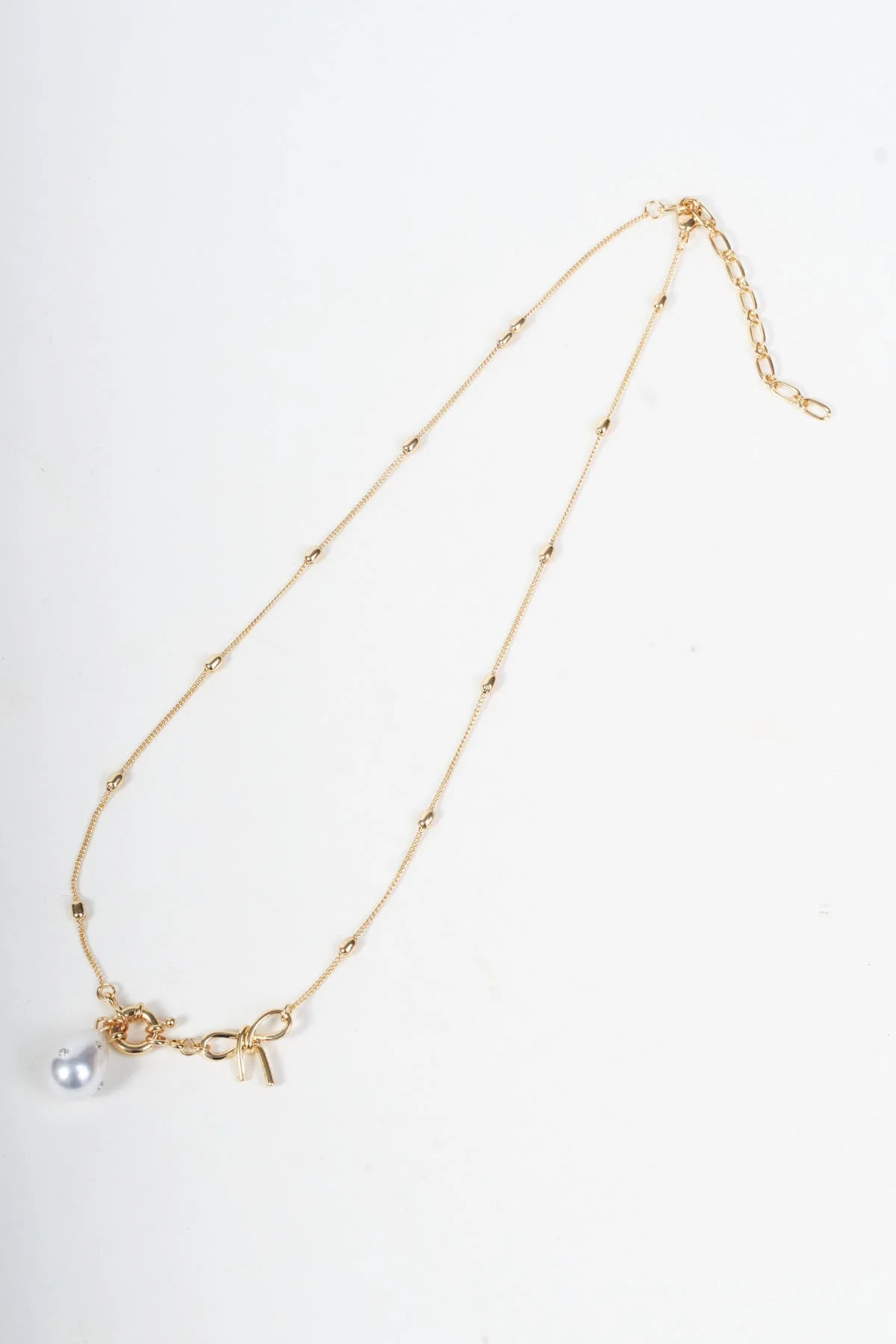 Bow & Faux Pearl Gold Necklace