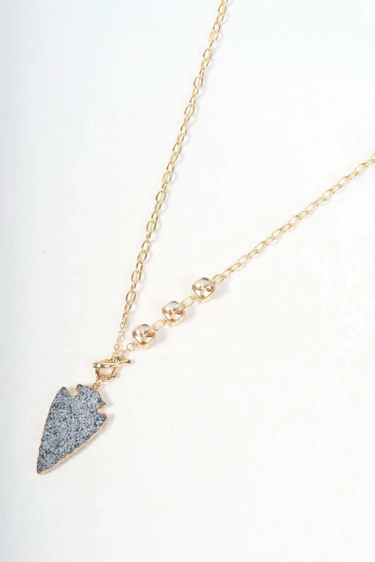 Diamante And Fob Gold Necklace
