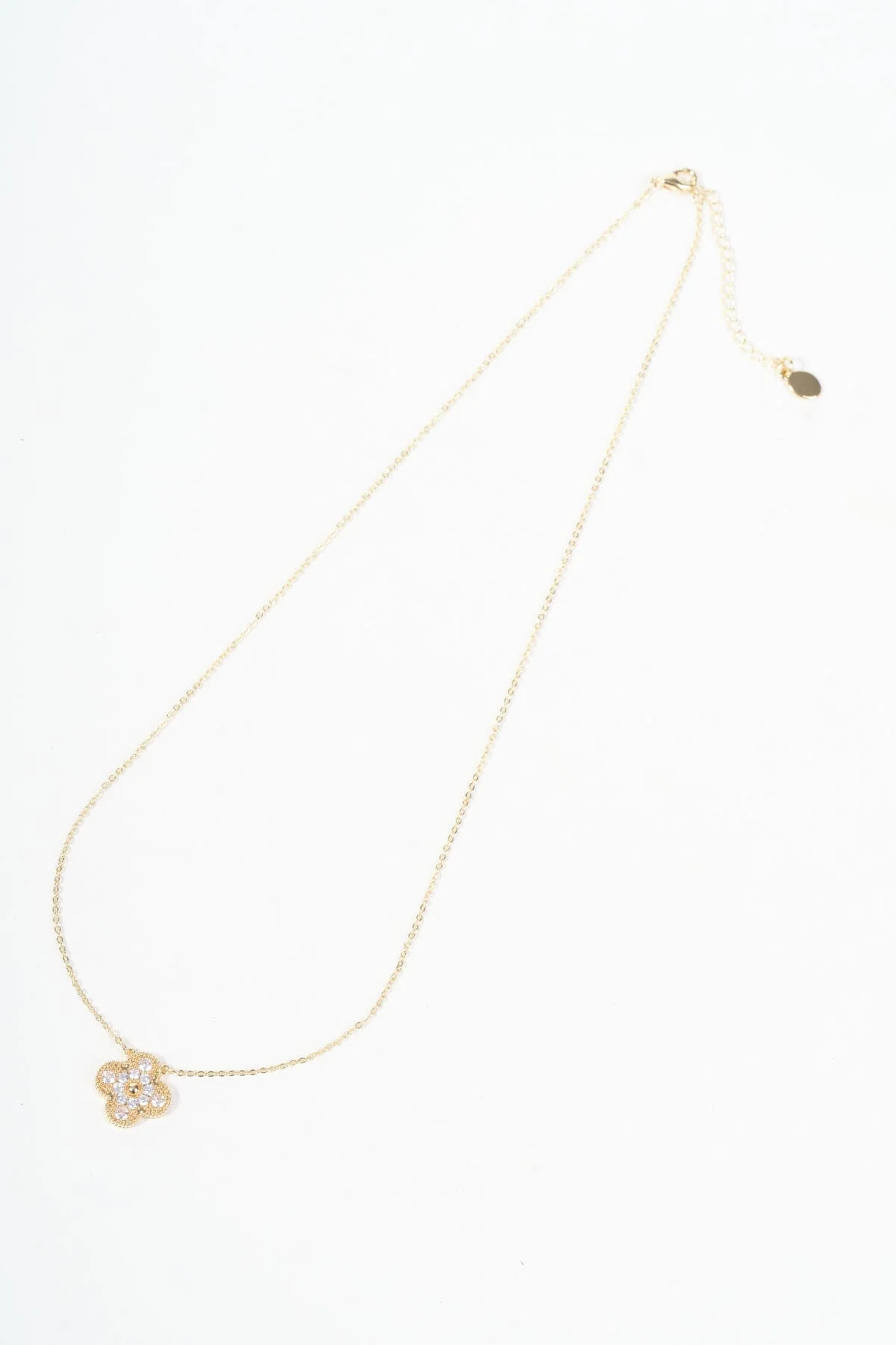 Gold Clover Diamante Pendant Necklace
