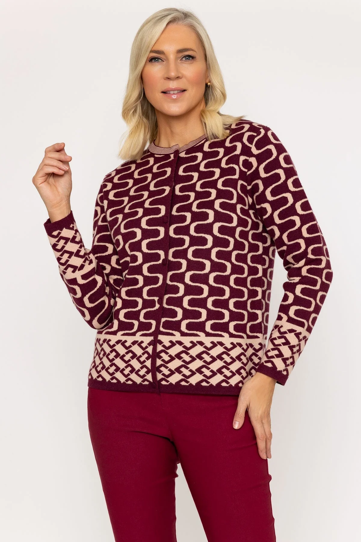 Burgundy Geo Pattern Cardigan