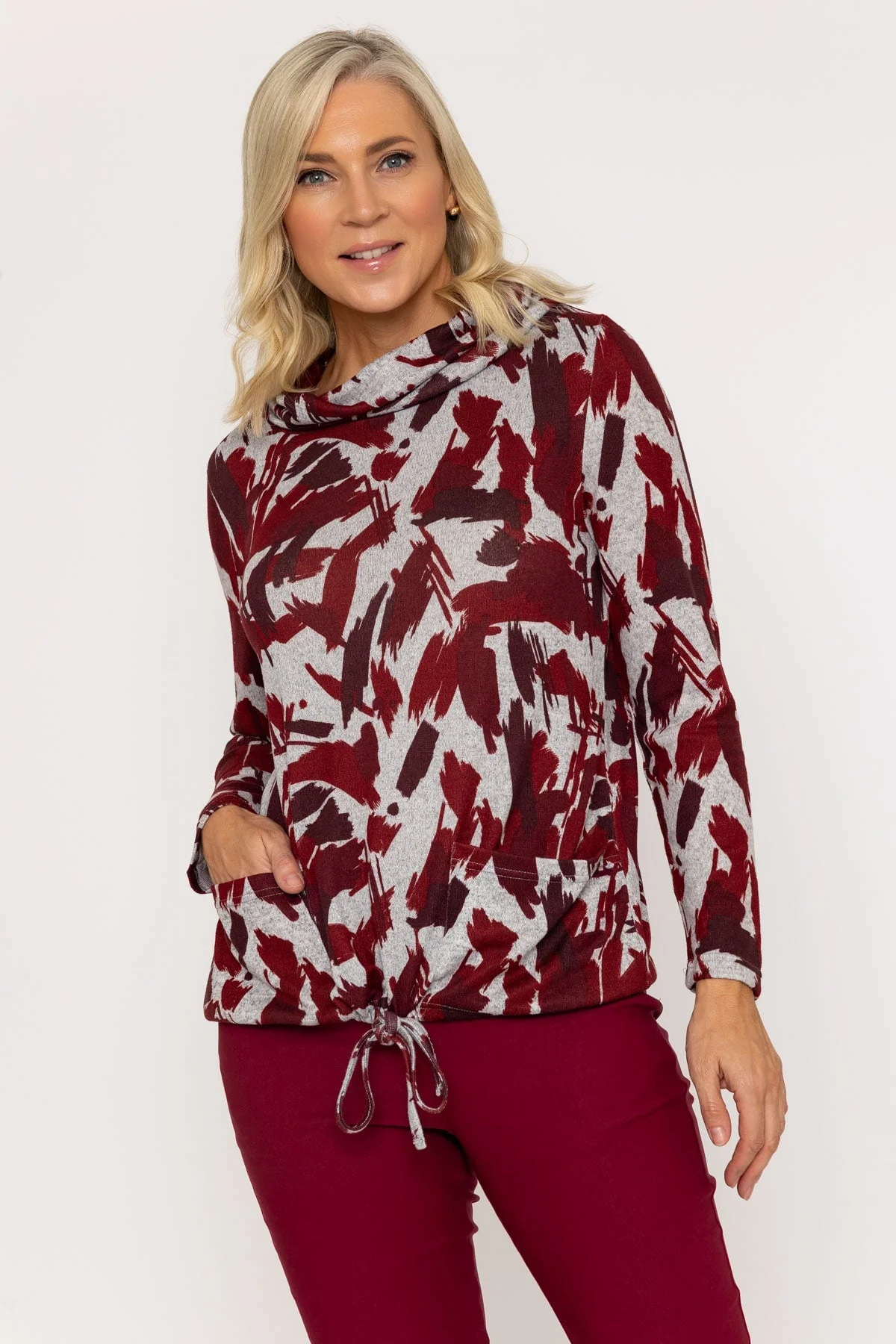 Burgundy Print Cowl Neck Top