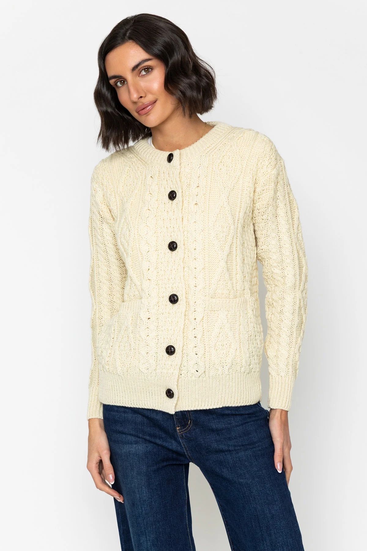 Heritage Cable Knit Cardigan in Ecru
