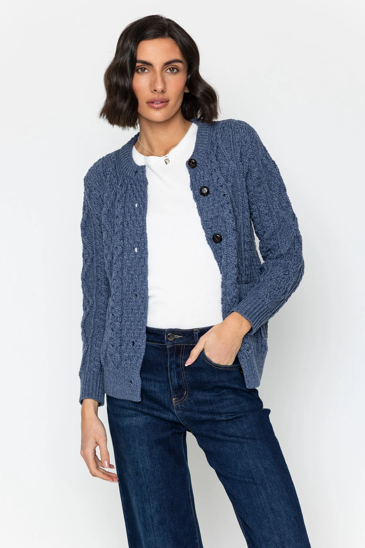Heritage Cable Knit Cardigan in Denim Blue