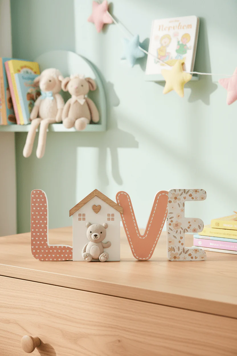 Decorative Wooden LOVE Plaque with Bear