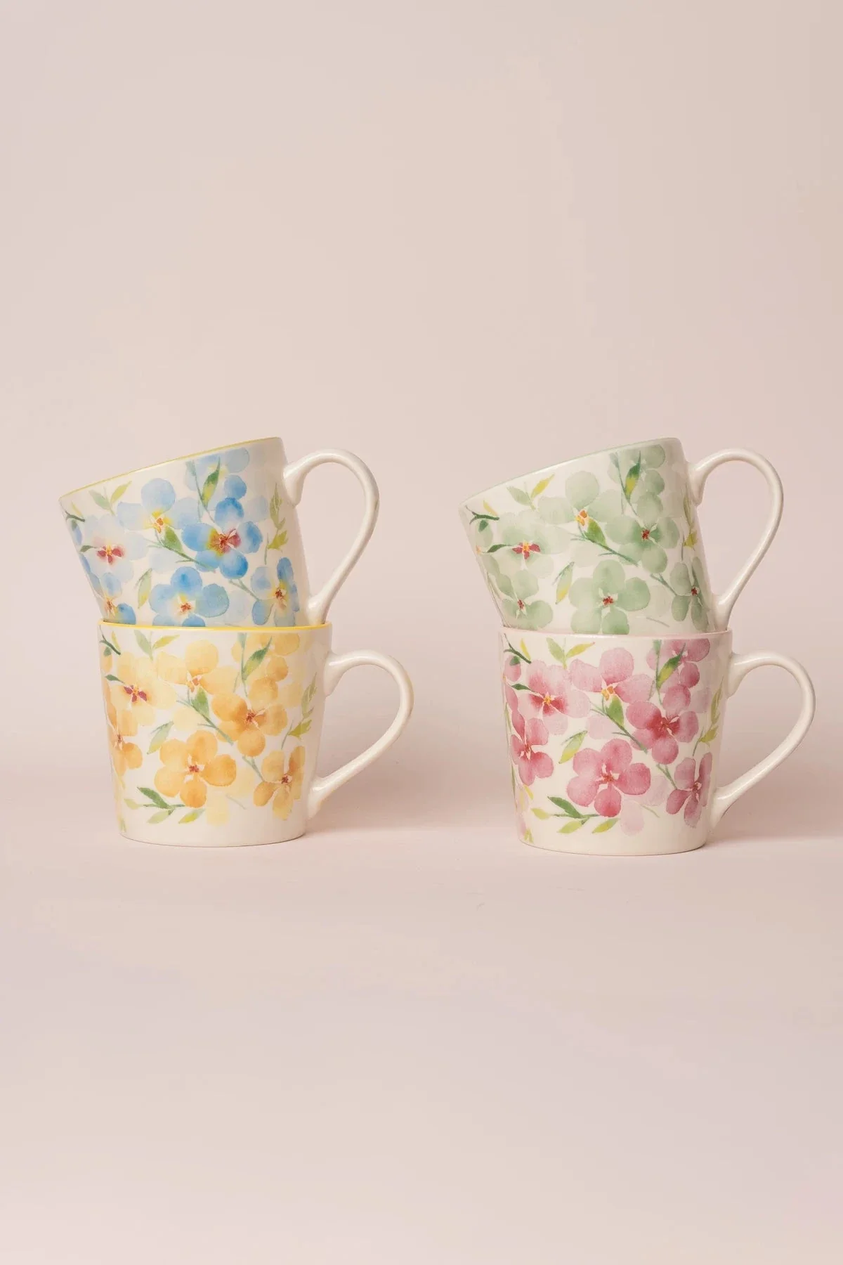 Set Of 4 Floral Mugs