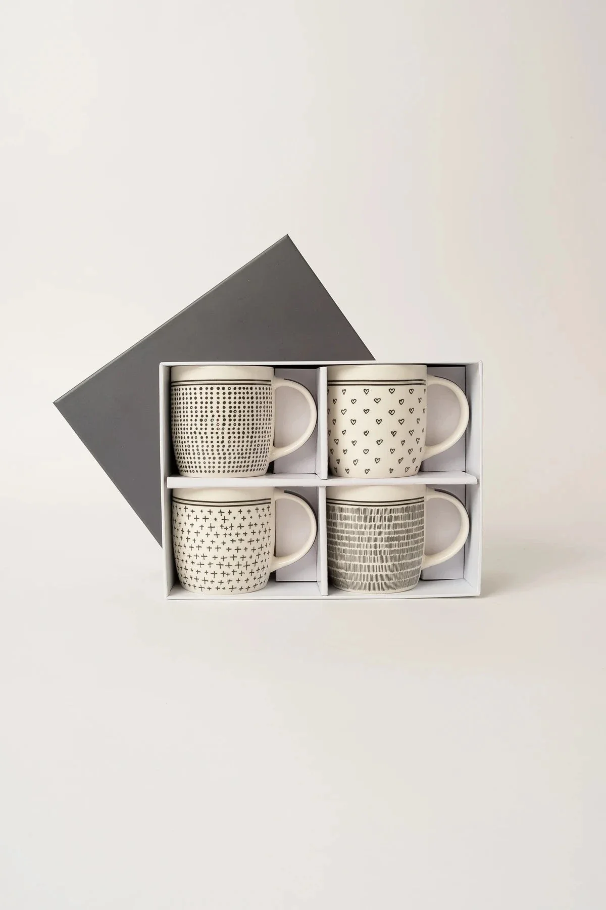 Set Of 4 Black & White Doodle Mugs