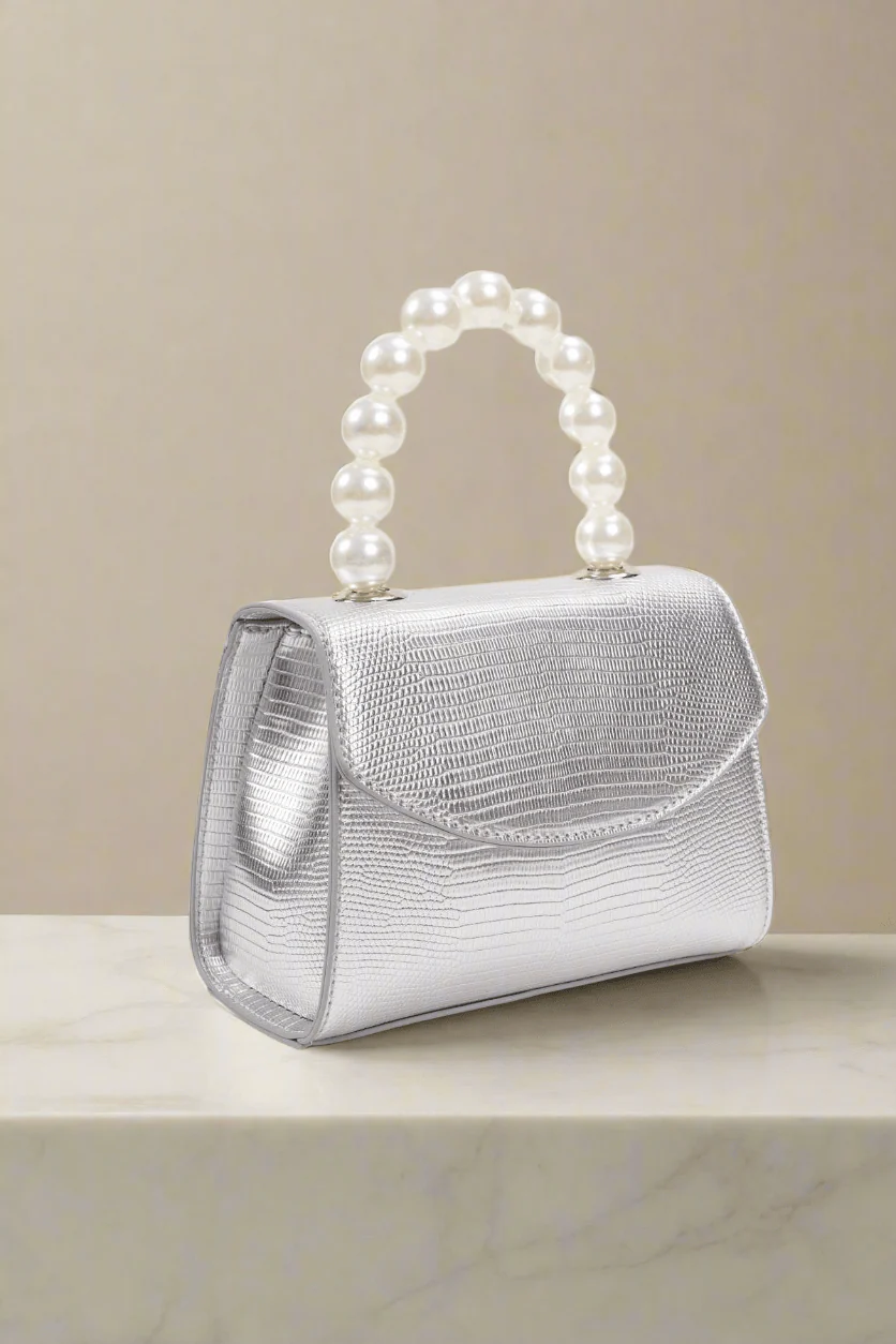 Pearl Top Handle Clutch Bag in Fuchsia Pink