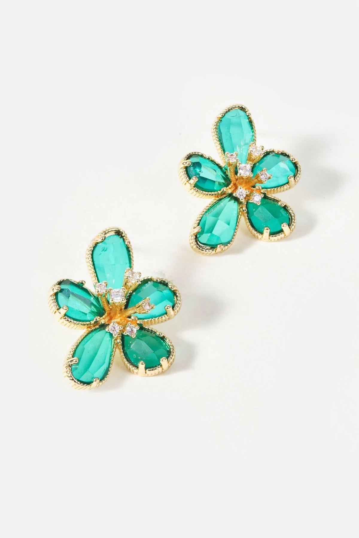Green Flower Stud Earrings