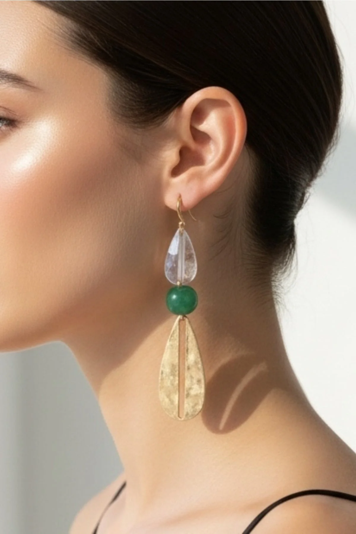 Green Mixed Metal Drop Earrings