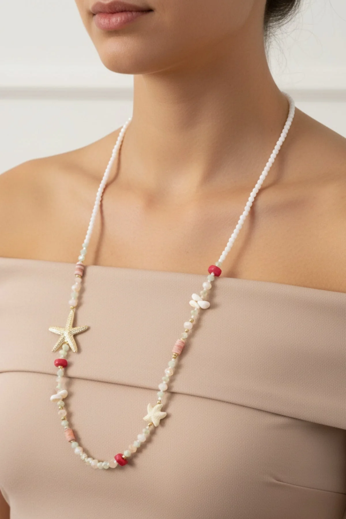 Long Beaded Starfish Necklace