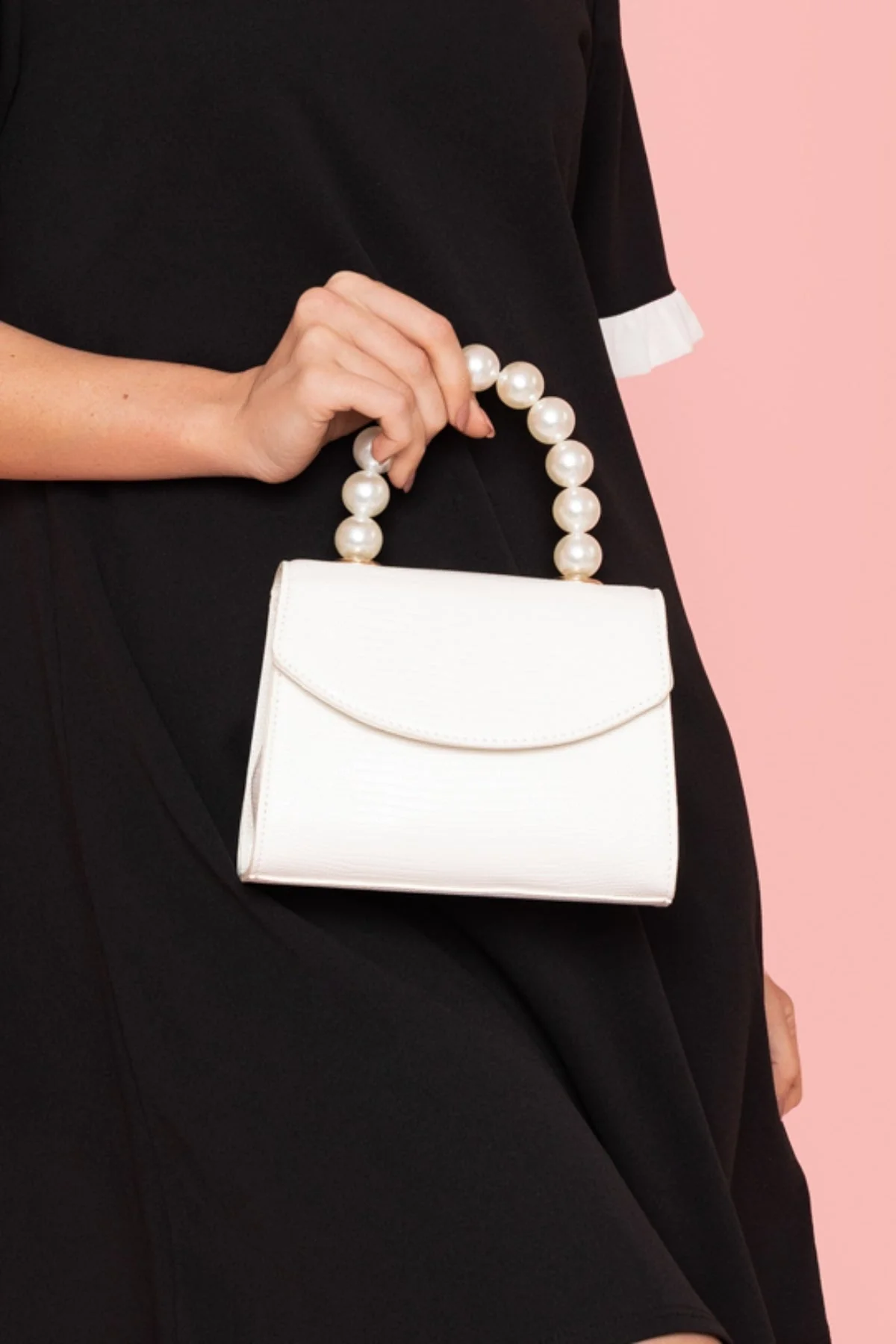 Pearl Top Handle Clutch Bag in White