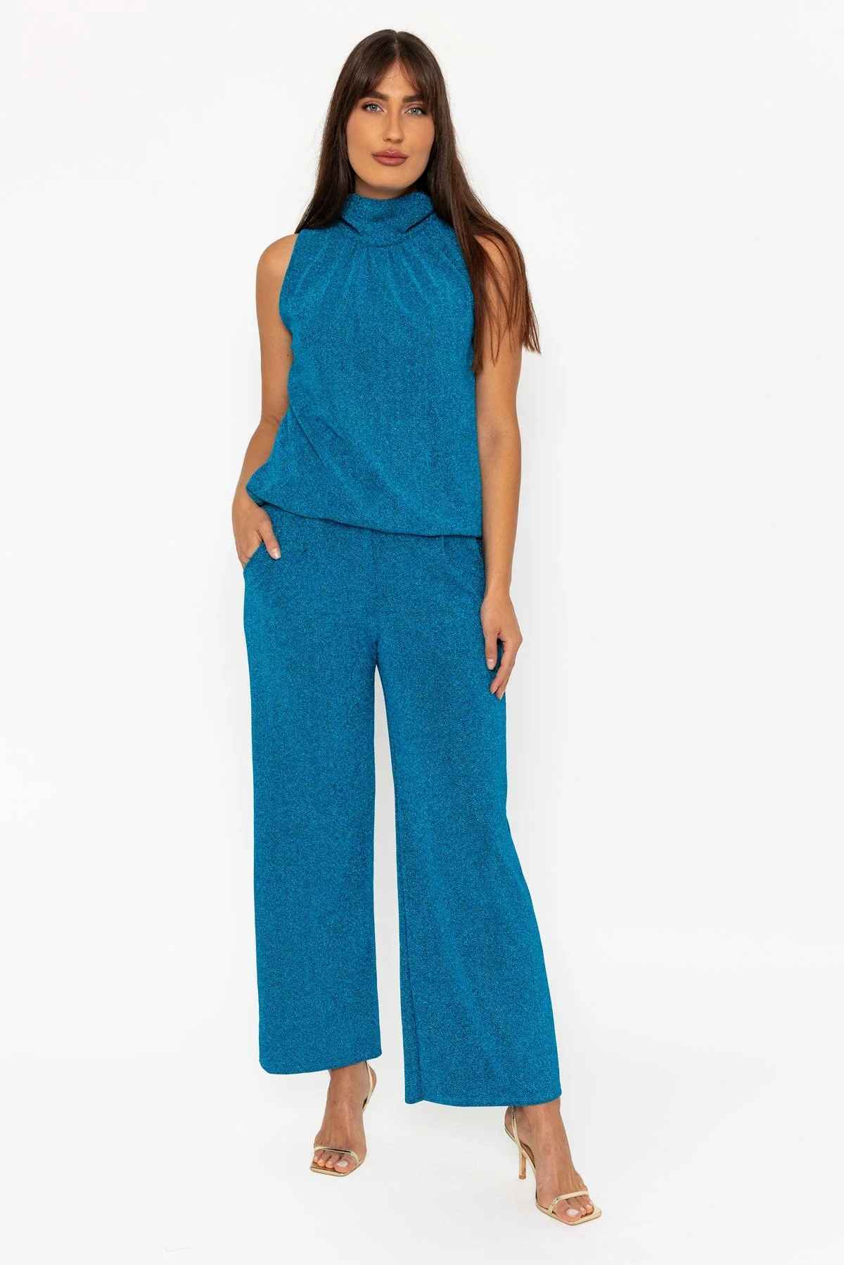 Teal Lurex Wide Leg Trousers