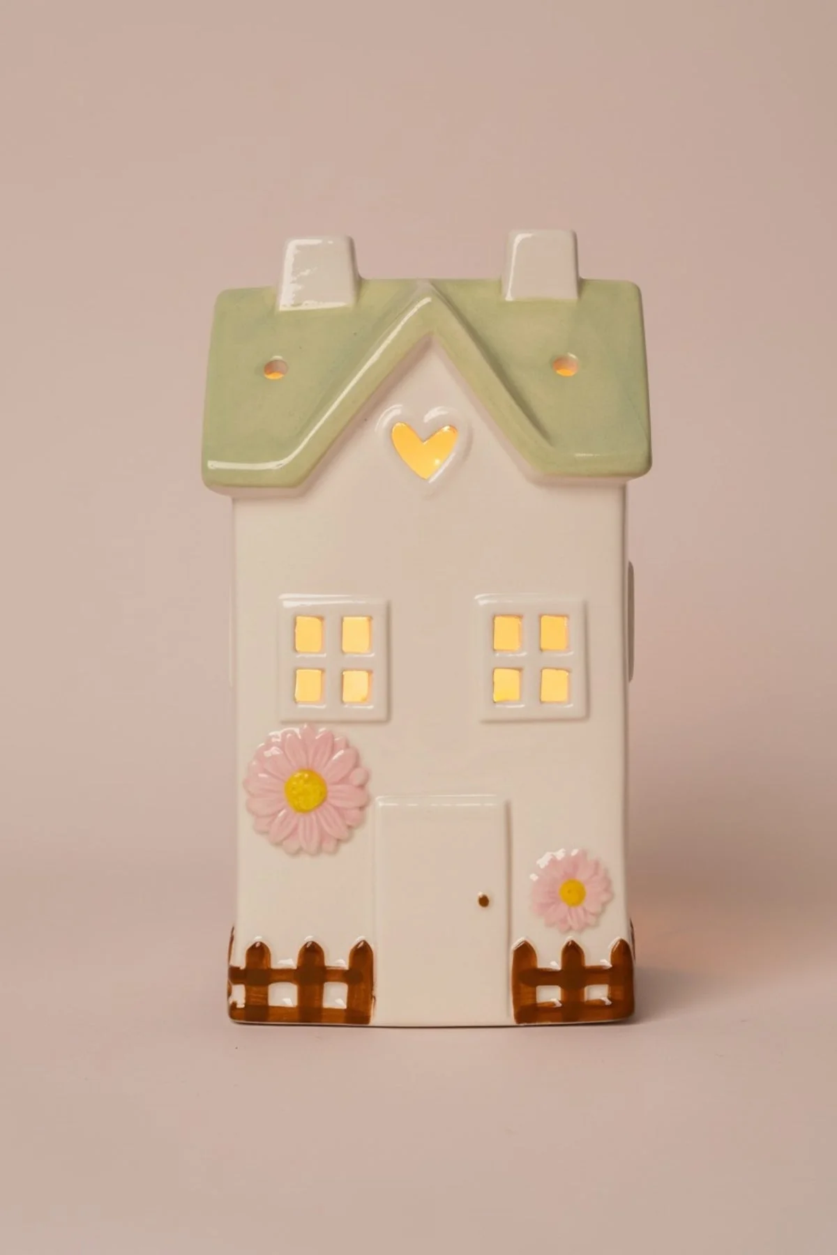 LED Pink Stoneware House Ornament