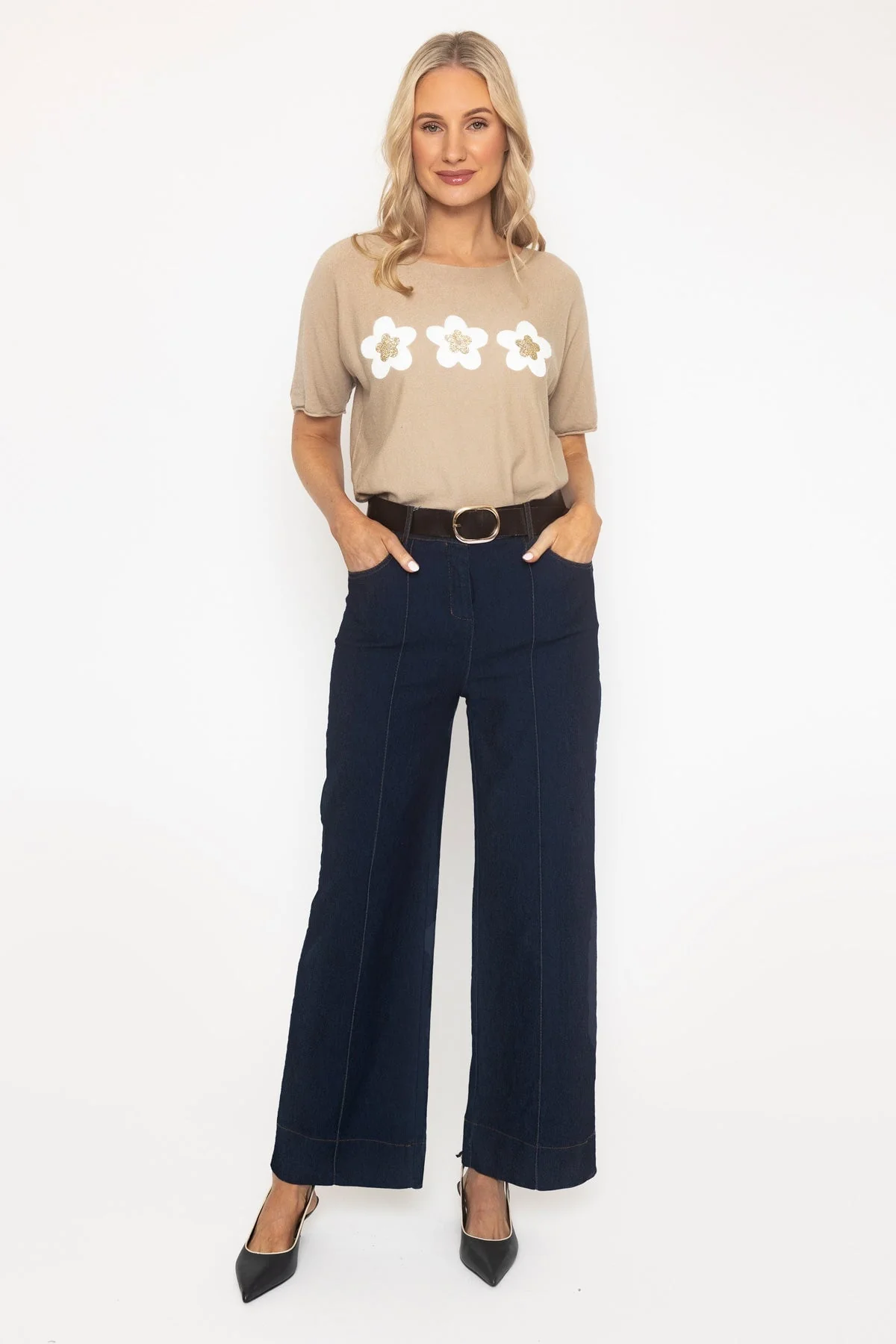 Wide Leg Seamed Denim Jeans